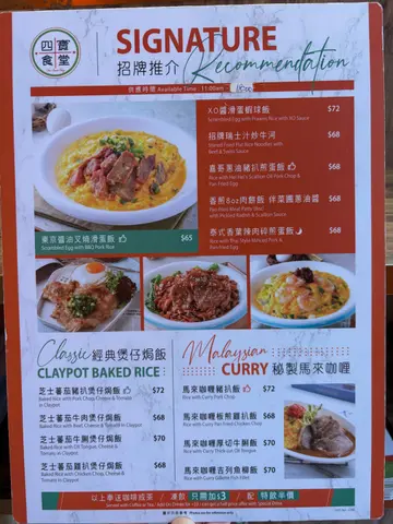 提供多国菜式的港式茶餐厅,招牌菜为经典蜜汁叉烧滑蛋饭及香煎喜哥葱油猪扒煎蛋饭,分量十足相当化算。