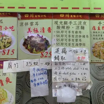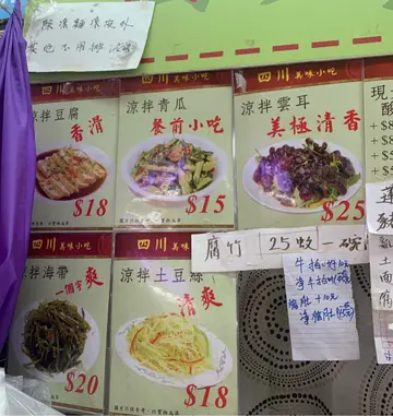 睇舞台剧之前去葵广扫下街,最集中散街一定系3楼,人山人海,次次见呢间四川美味都好多人排队,今次就叫一碗试下🤣落order有点似叫车仔面咁,首先拣要咩面,有手工凉皮、凉面、酸辣粉、担担面等,之后就可以拣𩠌,即叫即捞凉皮加猪耳(小辣)一碗凉皮$25,真系满满一碗,有青瓜、炸黄豆、芫荽,如果唔食可以同姐姐讲走左佢,凉皮切成宽阔的粉皮,大大片几挂汁,食落好爽弹🤤猪耳唔会好辣,份量都少,不过整体味道偏重味,食完返屋企仲有辣既余韵