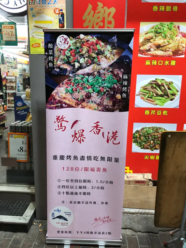 香港食烤魚好多都好貴,又唔想返大陸食,機緣巧合下見到有間烤魚店做緊任食就去左試,1-4人 1.5小時任食 4人以上2小時任食。價錢都幾平$128 唔駛比加一入到去個128任食福壽魚有幾種口味,分別有酸菜味、蒜香味、蕃茄味同麻辣味,我就試左個酸菜烤魚酸菜烤魚比好多酸菜,條魚都好大條,同埋店員一上上左二條魚,好足既份量,不過湯底加左辣椒都小小辣,魚方面條魚好多肉,肉好易起出黎食,另外骨係大骨黎唔係幼骨好易將骨同肉分開,個人覺得好好因爲唔太識食幼骨既魚,另外條魚最底有d冬粉,索左d酸菜既汁之後好好食,不過冬粉比較小,最後食完二條魚已經好飽無再食,依間烤魚真係幾抵食推介大家試試。查看更多