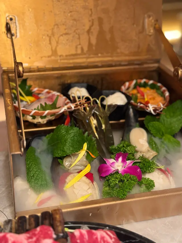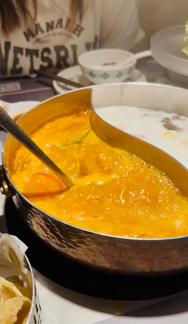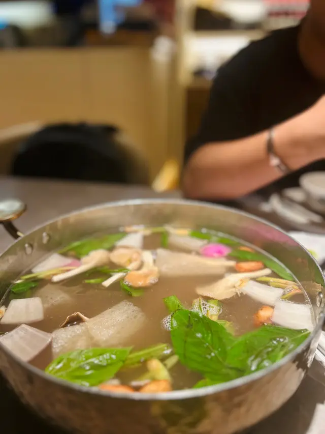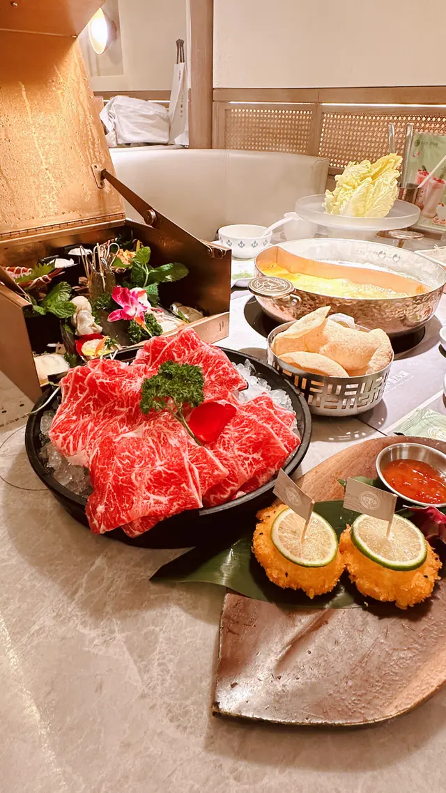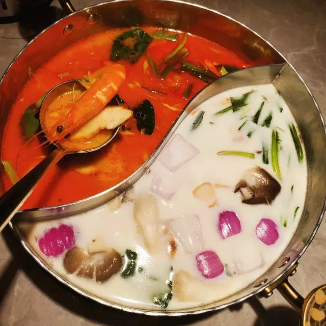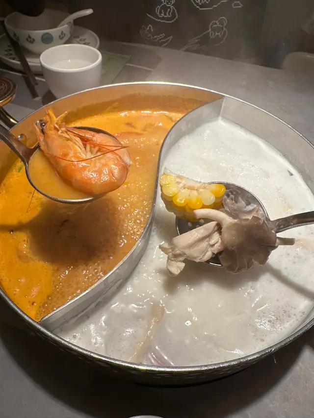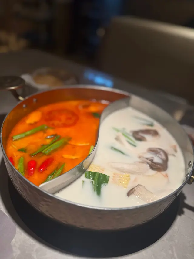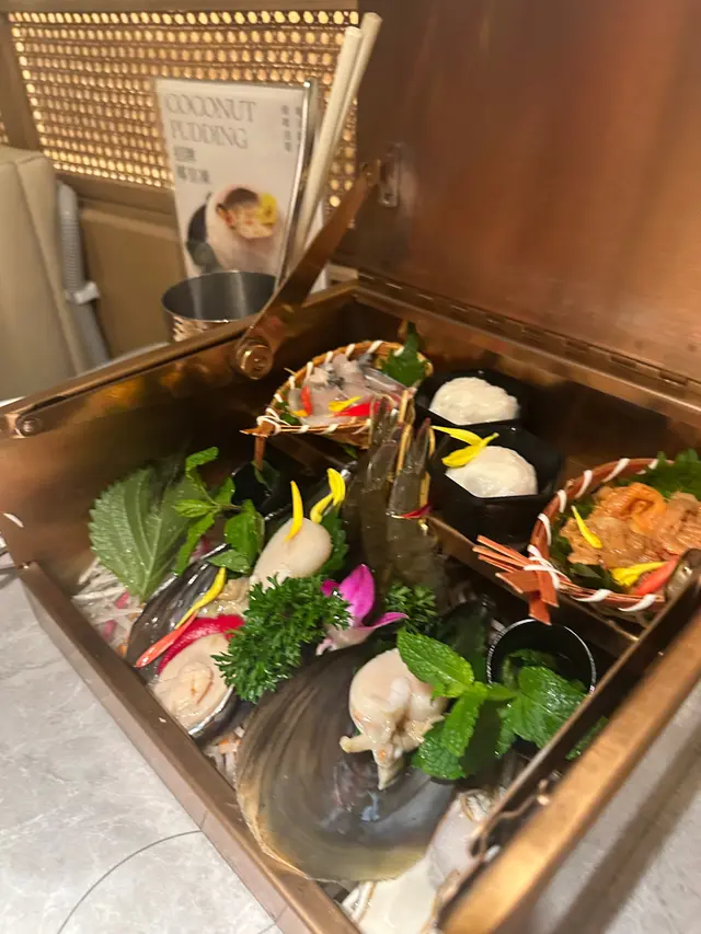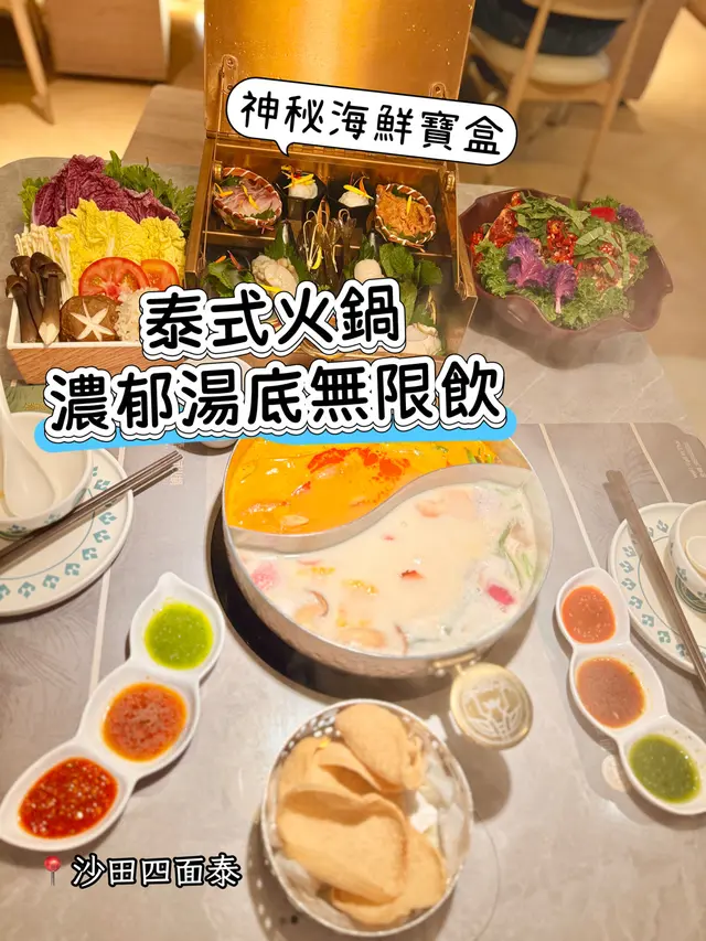 今日咁啱好想打邊爐,經過呢間餐廳,見到佢話食滿$400有公仔送,咁就一於嚟試吓啦。雖然我哋嚟嘅時間只係六點幾,但係入面已經好多客人,大家上嚟亦記住book位或者早啲到啦。雖然好多客人,但係呢度嘅裝修好開揚闊落,就算多人都坐得好舒服。侍應好細心咁介紹話原來呢度嘅湯底係親自煲出嚟嘅,而且就算加水都係加真正嘅湯底,咁就一於試個雙拼啦。我哋就叫咗椰子雞湯拼冬陰功蝦湯,佢叫我哋未打邊爐前就要飲咗啲湯底先,因為好香甜。我自己就最欣賞呢個椰子雞湯底,佢真係同屋企煲出嚟嘅一樣。椰子非常清甜,而且飲落唔會太膩,越飲越開胃。朋友就話冬陰功蝦湯比較出色,因為佢比較鍾意食辣,酸酸辣辣咁又係好開胃。我哋見到好多台都有叫呢個海鮮寶盒,一開盒佢仲加咗唔少乾冰,有好多煙噴出嚟,非常適合打卡。而且入面仲有好多唔同種類嘅海鮮。我最欣賞嘅就係呢個生蠔,因為佢除咗好大隻之外,而且非常新鮮,淥一陣就食得啦,完全唔使點任何豉油醬汁,都食到佢海水嘅清甜。另外呢個手打蝦丸都非常出色,喺呢度自製嘅蝦丸。而且食落好多蝦,唔會好似好多麵粉嘅感覺,又係唔使點醬汁都好好食。因為朋友唔食牛肉,所以我哋就揀豚肉。平時我唔係特別鍾意食豬肉,但係呢個豚肉非常大塊,而且食落肉質好好,食落簡直可以媲美牛肉,非常推薦唔食牛嘅大家嚟試吓。甜品方面,我哋就叫咗呢個椰皇奶凍。佢嘅賣相非常好睇,估唔到食落唔會太甜,而且份量好多,食完奶凍之後,仲有好多椰子肉,簡直為呢個晚餐畫上一個完美嘅句號。…查看更多