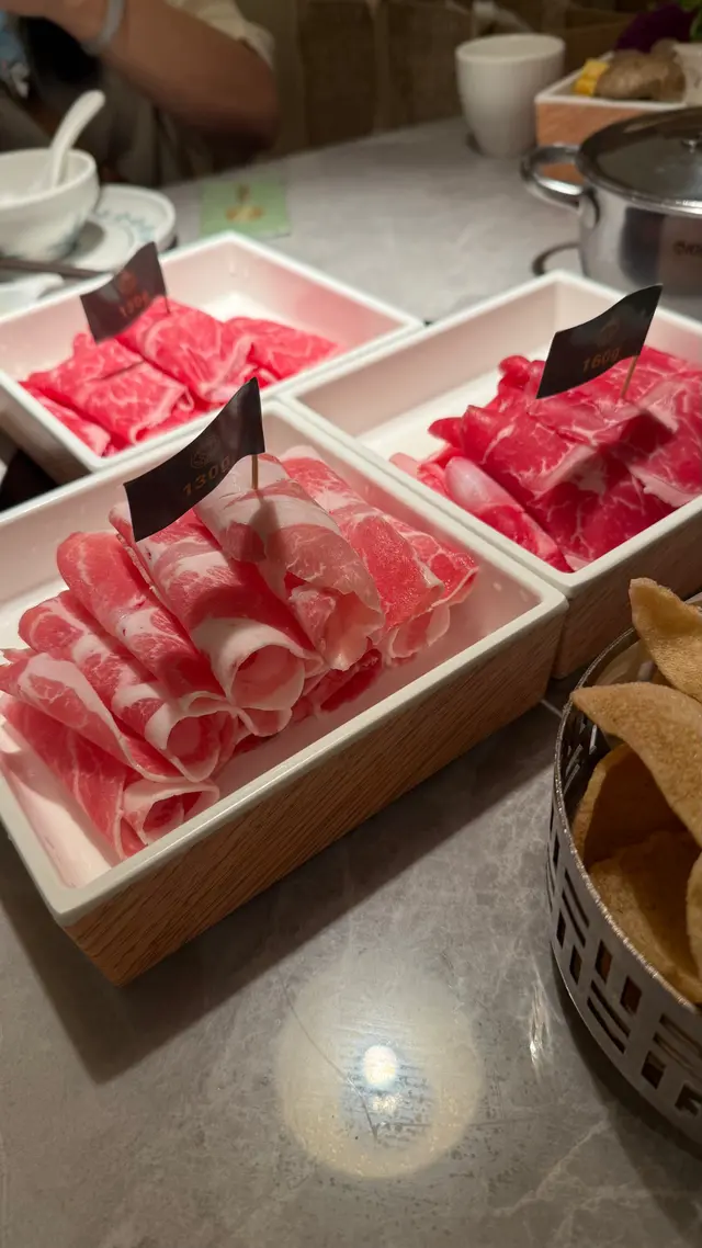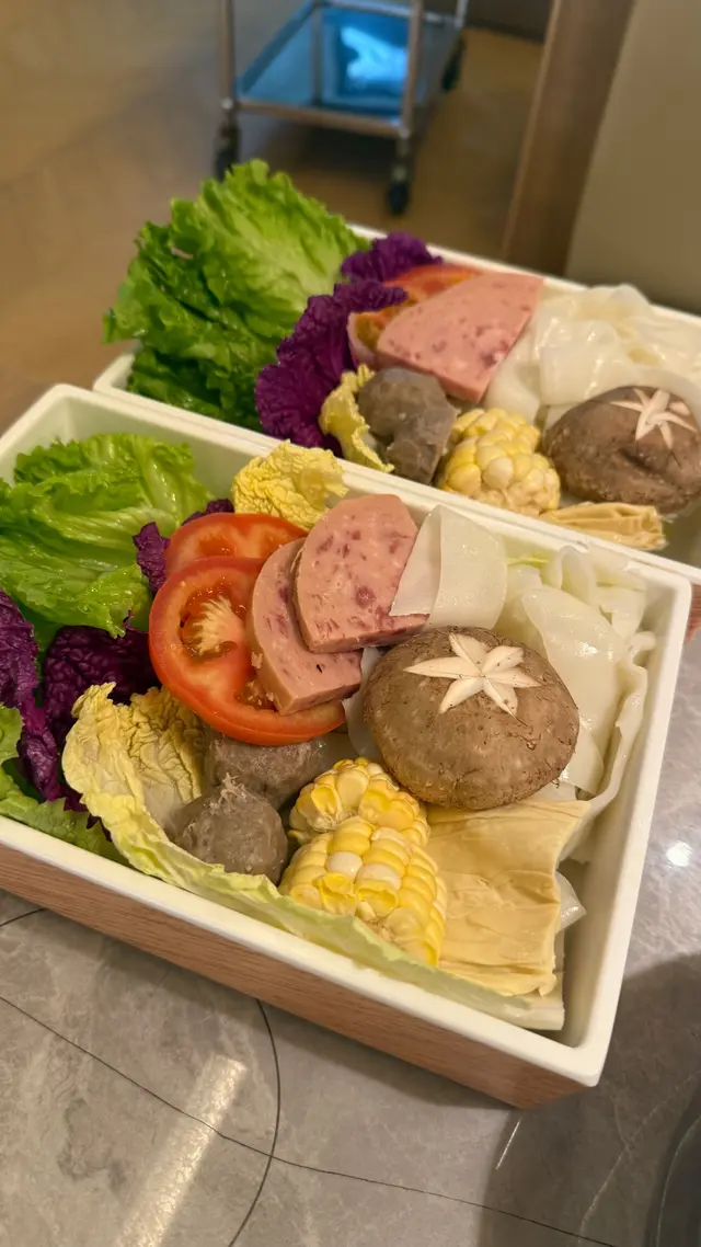 蝦餅都係必食,夠彈牙結實,雖然$24一件但都值得一試。冬陰功湯唔會太酸有微辣,不錯。肉放了落椰奶雞湯,肉就有香香嘅雞湯味,都不錯。牛板腱和黑毛豬賣相都不錯,食落唔會嚡和靭。而這盆蔬菜份量都不少,對於我黎講食100g加這盆菜已經非常足夠。最後我們還點了一份點品「多肉青提蜂蜜椰冰」,我覺得這個點品嘅重點是椰汁冰,食落冰很幼細,沒有食冰嘅感覺,入口即溶,冰底還是椰果,爆珠,另外這杯蜜糖🍯都非常美味,但我哋唔想影響椰汁嘅味道就只加了一點,可惜浪費了這杯蜜糖。我們還在大眾點評給了一點意見,之後還每人送了一杯特飲。