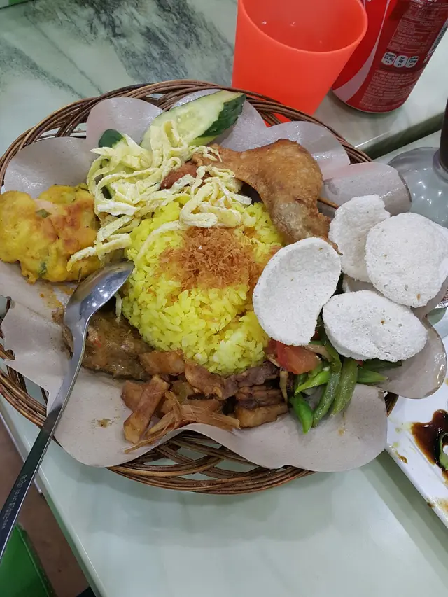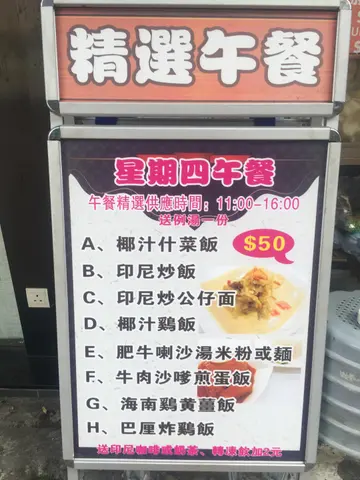 首先,我同妈咪都系印尼华侨,对印尼菜都有一定嘅认识。呢日行开荃湾,就嚟呢间印尼餐厅试下。环境:卡位枱同櫈距离好窄,坐入去都有D吃力,我个心口就嚟贴住张枱。衞生一般,有D凌乱。服务:侍应,老板一D笑容都无,黑口黑面。问个侍应攞只碟都唔畀反应,最后系有俾只碟我嘅,但可以俾D反应吗?食物:嗌咗3样嘢食1. 杂锦饭 - 𩠌有椰汁杂菜、有只鸡腿煮埋一齐,我认知中杂菜唔应该有鸡的。有炒豆角,正常。跟住有D炒薯条?!系用麦当劳果D薯条