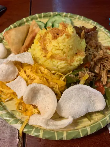 2.黄姜饭 - 又系有酸味薯条,有春卷,咖哩角,鸡翼,呢啲都系出面买返嚟自己炸熟,唔系自制的。黄姜饭就有啲淡,无香味。 3. 珍多冰 - 不过不失总结: 印尼菜完全唔正宗,连春卷咖哩角都可以摆上枱,个酸味薯条简直系夸张,可见厨房系一啲心机都无放落去,又或者系觉得香港人唔识,整啲咁嘅不知所谓印尼菜。喺街市印尼商店D姐姐饭盒都好食过佢。