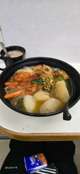 回味车仔面大满足,吃完后确实是很满足,充满能量的一天,令我今天的工作也干劲十足。给我联想起读书时期的情怀。这个大满足车仔面,可以让我品尝不同种类菜肴。但其实其他菜品,我也很想尝试呢,足足有40多款以上不同品种的菜肴。其他不同菜肴我也特别想试一下,特别是萝卜丝猪肉丸及他们新出品最爱的牛筋,这个也是他们招牌菜之一,这个不是很多车仔面店铺有的。在吃面途中,听到对面桌子的一对情侣谈话当中,说是他妈妈无意中选择店铺品尝后介绍给他们来吃的。所以店铺食物的美味是回头客的重要因素。