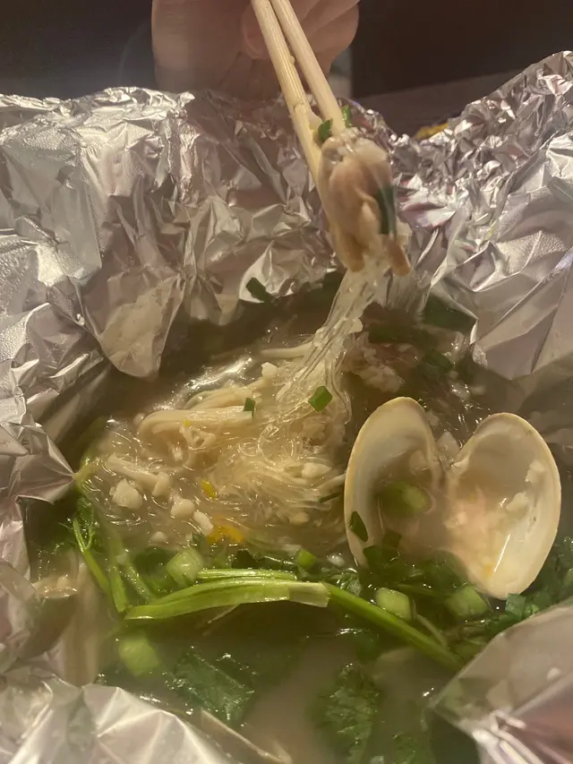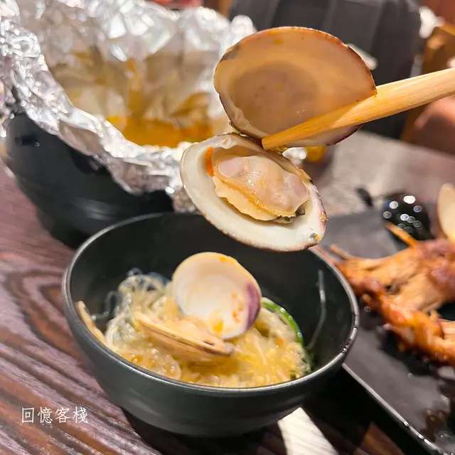 好味指數:😋😋😋😋推薦指數:⭐⭐⭐⭐好少舖頭會專賣花甲粉,想食都唔係咁易搵到🤔見到ig 好多人介紹呢間花甲粉🤤特登過黎試😍✅招牌花甲粉$54用咗錫紙包住,一打開香噴噴😍花甲量充足好鮮甜,湯底好重蒜香味,粉絲索灑啲湯底非常入味,另外加咗娃娃菜🥬非常正🤤✅串燒牛仔的肌肉$28,燒燒賣$12,豬頸肉$14,雞軟骨$13,翠玉瓜$12呢度啲串燒價錢相宜,孜然粉好香🥰叫咗幾款鍾意嘅串燒食,燒燒賣又幾好食!次次食串燒都一定會食雞軟骨😋📍回憶客棧 (長沙灣)地址:長沙灣保安道405號昌暉大廈地舖查看更多