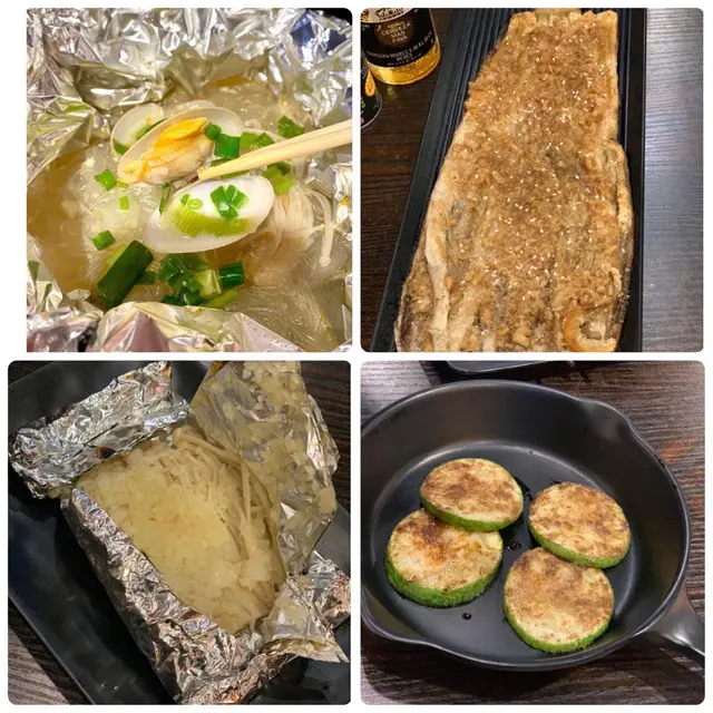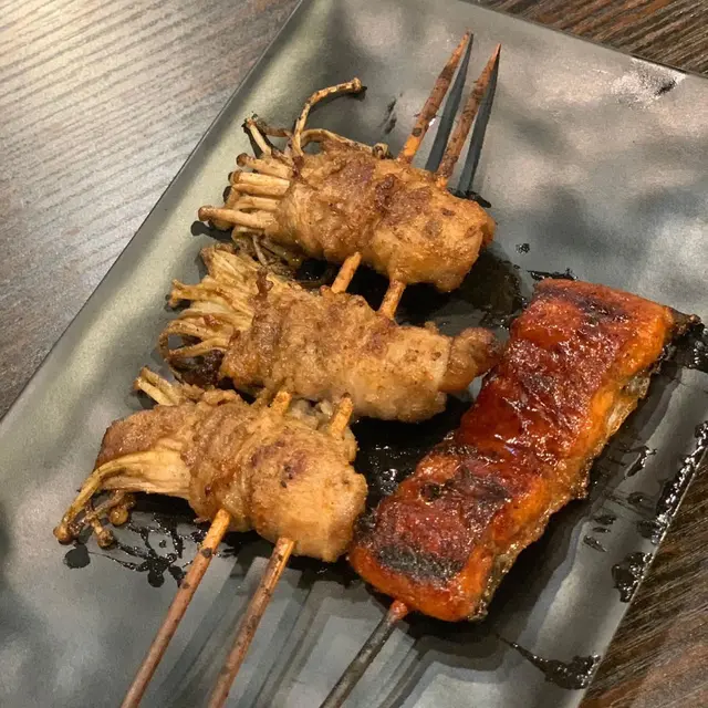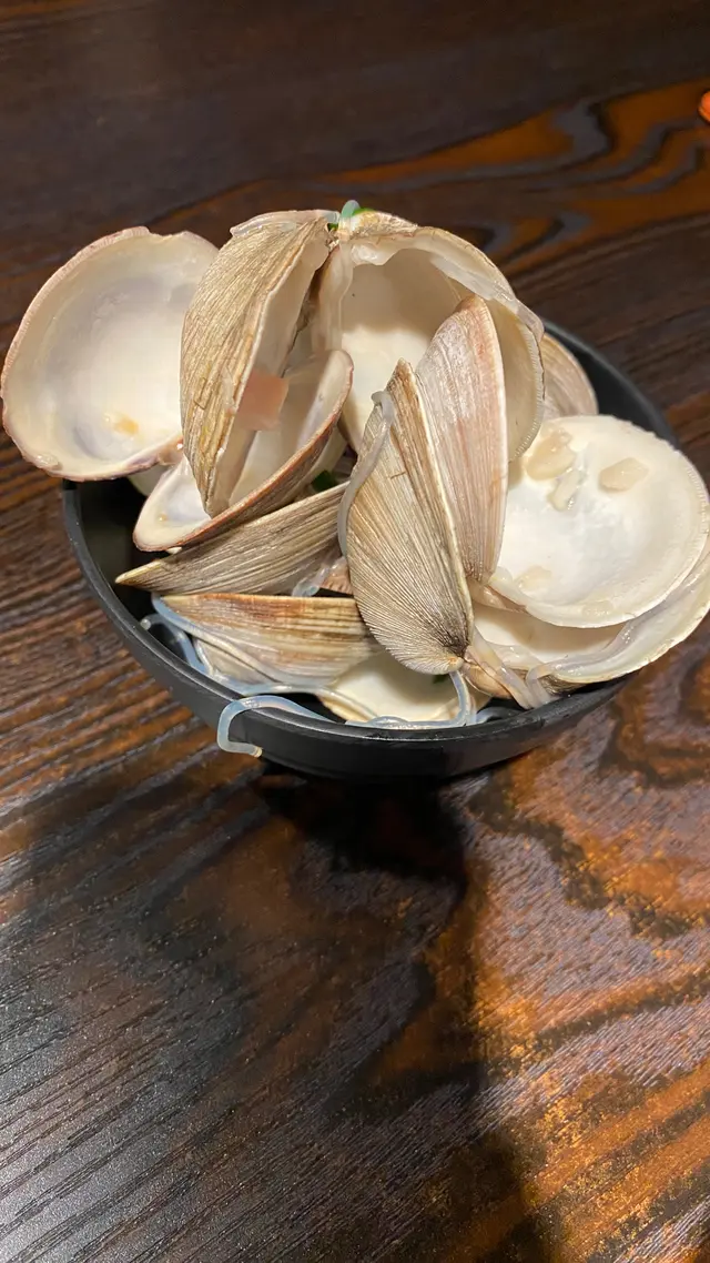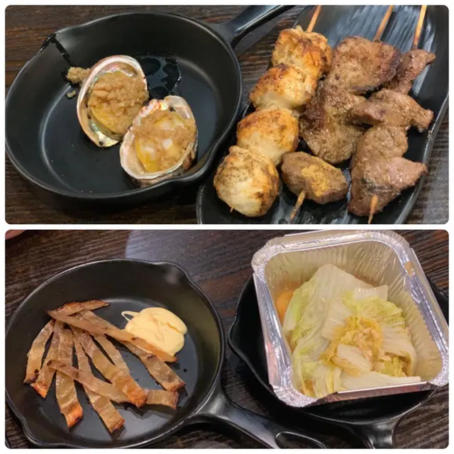 無意中俾我發現咗呢間好隱蔽嘅串燒小店。店面有10多個位,簡約木系風格,櫃台後有個特色酒櫃,啱晒良朋知己黎小酌一番。朋友太肚餓關係,我地點咗2個招牌花甲粉絲同好幾樣串燒。招牌花甲粉絲 用錫紙包成山形上台,一打開好香濃嘅花甲香,花甲份量多,正常size但好鮮甜。粉絲吸晒啲湯同花甲鮮味,好好味!燒雞泡魚干🍺餐前送酒小食,必點之選。燒熱上台,軟冧好𡁻口。燒茄子🍆另一必點之選。差不多2隻手掌長嘅茄子,燒到外皮有微微脆口,簡單加上大量蒜蓉同孜然粉調味,十分惹味。燒鮑魚仔肉質彈牙爽口,無太多調味,保留咗本身嘅鮮味。牛油金菇錫紙包住上台,將金菇浸泡在牛油汁中,好入味。燒娃娃菜、翠肉瓜🥬好甜嘅新鮮蔬菜,翠肉瓜加咗調味粉燒,燒完一啲都唔乾身。串燒雞腎、牛舌、墨魚丸🍢雞腎好好咬口;厚切牛舌嫩口; 墨魚丸非常彈牙好味。串燒金菇肥牛卷、鰻魚 🐟 金菇好入味,牛肉燒到半脆口; 鰻魚串燒到微燶,有點炭燒味道 。餐牌上仲有好多海鮮選擇(如扇貝、花蟹、鱸魚等),愛吃串燒、海鮮嘅朋友可以黎呢度試下。查看更多