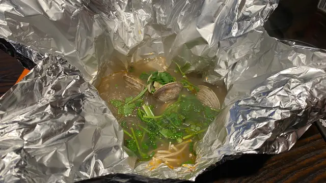 夜媽媽搵宵夜食,見到佢嘅營業時間16-2,個名又好有feel咁,就揀咗嚟依間~開post嘅依家又想再嚟食啦!依間真係唔錯~🔹花甲鮮魷粉 $54佢嘅招牌—花甲粉,係會用錫紙包住咁上菜,非常特別。可能因為我本身中意食粉絲,而煮完花甲嘅湯底同粉絲真係好夾,再加埋啲花甲又真係大大隻咁,所以個花甲粉真係👍🏻👍🏻👍🏻 佢係可以再額外加餸/菜嘅,我今次就加咗鮮魷~份量正正常常啦~下次再嚟就會想加多幾樣嘢落去~🔹雞軟骨串燒 $13串燒入面最鍾意嘅果然都係雞軟骨~🤤🤤 貌到有就即刻揀咗~味道係正正常常嘅串燒味🤣🤣唔會太淡亦都唔會太濃🔹牛油金針菇 $18金針菇都係用錫紙包住嘅上~加咗牛油真係超級無敵香🤤🤤📍回憶客棧查看更多