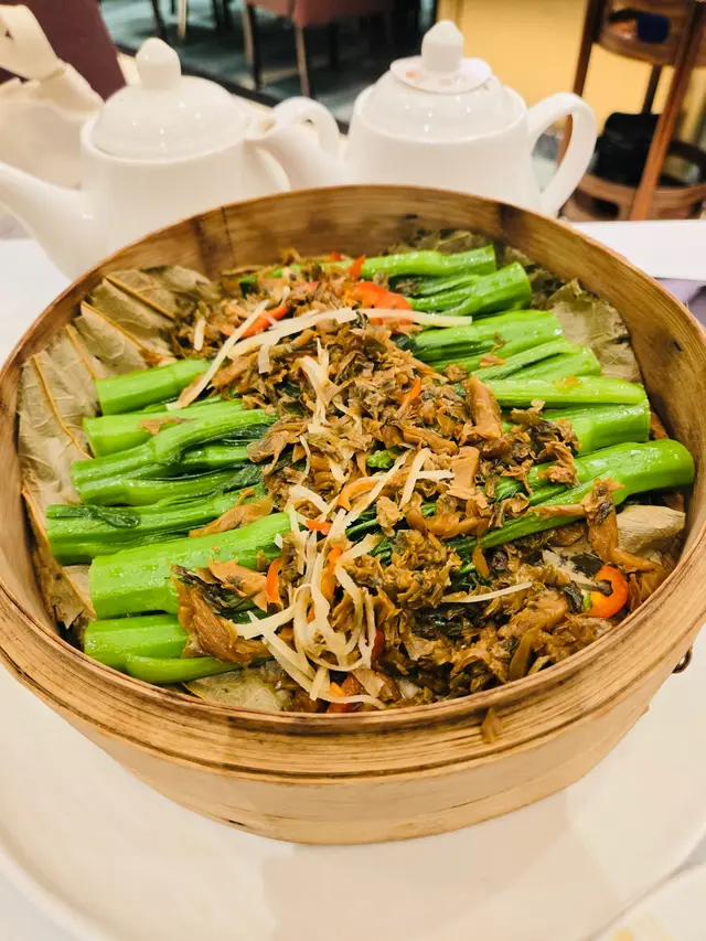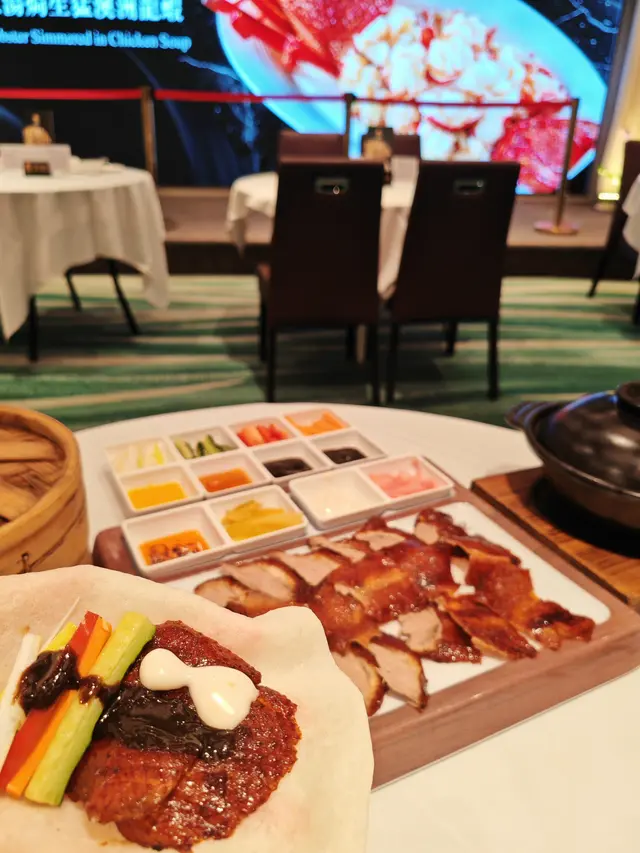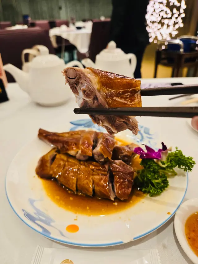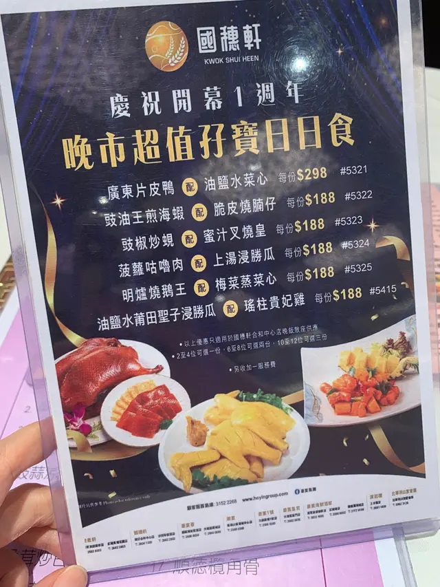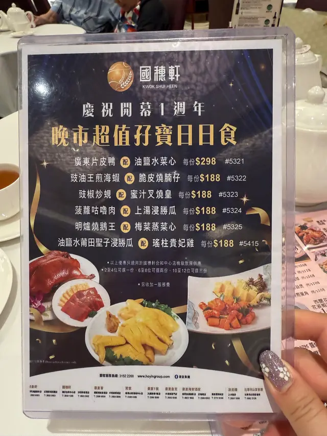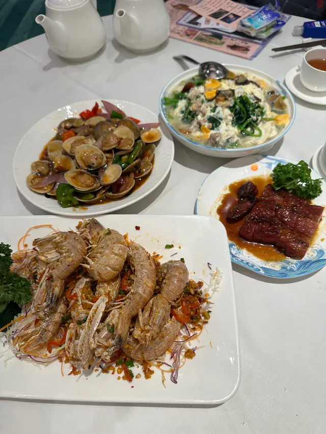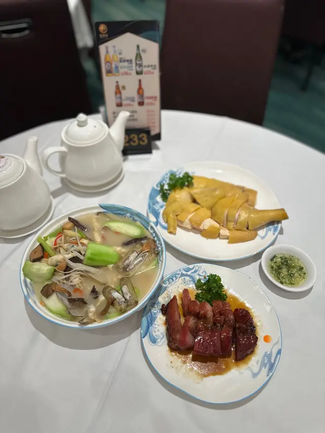 餐廳是經典的中式酒樓格局,寬敞明亮,桌距適中,沒有壓迫感,坐得舒服自在。週年慶推出的「晚飯孖寶」優惠,選擇豐富,定價確實超級經濟實惠,在高級粵菜廳中屬難得一見。🌟孖寶一:油鹽水莆田聖子浸勝瓜 + 瑤柱貴妃雞🥢油鹽水莆田聖子浸勝瓜莆田聖子個頭不小,肉質新鮮爽嫩,處理得乾淨無沙,湯汁清澈,鹹鮮味恰到好處。勝瓜吸飽了湯汁和聖子的鮮味,清甜可口。🥢瑤柱貴妃雞雞肉皮滑肉嫩,雞胸肉不鞋,雞脾位更加係嫩滑有肉汁。🌟孖寶二:清蒸沙巴斑仔 + 蜜汁叉燒 🥢清蒸沙巴斑仔斑仔約一斤重,大小適中。火候精準,魚肉剛熟,口感嫩滑細緻。蔥絲、薑絲鋪面增加鮮味。 🥢蜜汁叉燒叉燒賣相紅潤亮澤,肉質入口鬆化,油脂甘香,不會過甜。🌟餐廳額外贈送了紅豆沙與綠豆沙。紅豆沙起沙,口感綿滑;綠豆沙同樣軟糯,甜度溫和適中,為整頓晚餐畫上完美句號。🌟餐廳整體體驗令人滿意,環境舒適乾淨,服務在滿座情況下仍有效率。週年「孖寶」優惠極具吸引力,絕對會再黎。…查看更多