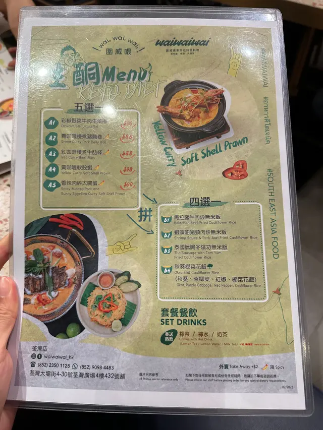 充滿驚喜嘅一間泰國餐廳,餐廳名特別,裝修又搶眼。餐廳經理仲好友善,推介好味嘅菜式比客仔😙✨泰式鮮黃咖喱海鮮多士盒 ($168)整體都好大個,除咗打卡一流,連味道都唔錯!咖哩好澎湃,滿滿一碟好似就黎瀉。味道甜甜地,好有椰奶味!麵包好軟熟,點埋一齊食好豐富。海鮮都好鮮甜😆✨圍威喂!炒金邊粉($98)金邊粉配料多,滿滿芽菜。炒嘅濕度適中,食落甜甜地,味道似足泰國,幾好味🤤✨圍威喂!香辣豬肉生菜包($88)辣豬肉係其中一樣泰菜經典。辣豬肉炒得好香,配埋蔥頭一齊辣辣地幾過癮😚✨蒜香炒通菜($78)通菜有鑊氣,炒出黎都好翠綠。配埋大量乾蒜好惹味😋✨圍威喂拼盤 (春卷.魚餅.蝦餅.單骨雞翼)($138)每款小食都試試小小就夠晒滿足!每件都炸到金黃色,魚餅蝦餅食落彈牙、雞翼入面保留肉汁、春卷多料🤘🏻✨泰奶茶雪糕配油蔥餅($58)雪糕分別係斑蘭同泰式奶茶味,兩者都好濃郁,配埋油蔥餅原來好夾!油蔥餅酥脆,係冰火交融嘅感覺。只係塊餅有少少難切🤣🥤木瓜奶奶 ($36)木瓜味好濃,嗌咗少甜比例啱啱好!質感係濃稠款,飲落好足料🤘🏻🥤炭燒黑糖珍珠鮮奶 ($36)珍珠煙煙韌韌,好有咬口。黑糖味好足,配埋鮮奶真係邪惡感大大提升🤪———————————————————————💰加一:✔️⏰限時:❌…查看更多