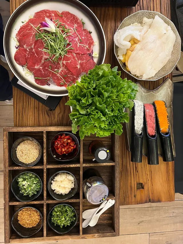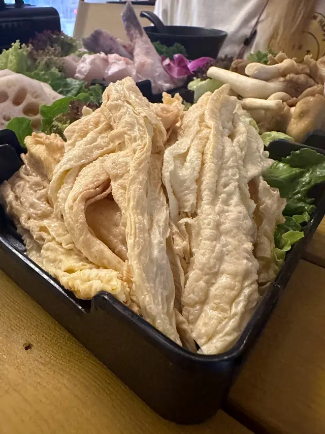 呢間新開既火鍋店裝修超級靚,打卡一流,充滿文青風氣息,唔講以為係Café。✨新張優惠套餐(7折後$680)包括肉類、海產、手工餃子、丸類、菜類、雜類生料✨花膠雞鍋(半隻)雞肉超嫩滑好食,可以先飲湯,然後再打邊爐,每日限量20鍋,先到先得!✨安格斯牛小排牛小排入口即溶,份量好多。✨中山脆肉鯇魚片脆肉鯇好鮮甜,口感脆,非常好食。✨韭菜鮮肉餃韭菜和鮮肉比例完美,鮮肉新鮮。✨濕炸枝竹枝竹吸收完湯既精華之後很美味。✨黑白無常分別有白色和黑色的墨魚丸,個人喜歡黑色的,比較濃味。✨水晶粉口感Q彈,吸收完湯的味道好正。✨油麥菜油麥菜新鮮,份量不少。✨秀珍菇發現打邊爐食菇類都正,秀珍菇又軟又入味。✨蓮藕片爽脆可口,切到細細塊方便進食。…查看更多