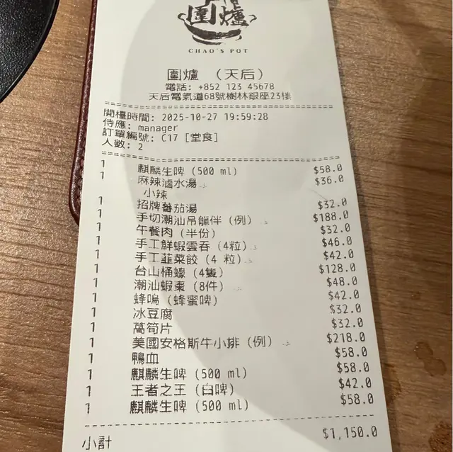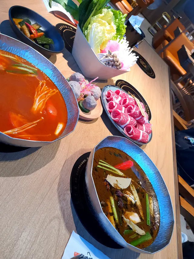 圍爐,位於天后既火鍋店,一覽維港景色既餐廳🤩相當難得,餐廳主打一人一鍋,潮式風味既邊爐,先飲杯麒麟生啤先🍻Cheers,$58超抵價👍🏻配個潮州小食,潮汕蝦棗,脆得黎蝦肉好味,正👻麻辣滷水湯,非常有特色,香濃好味😋因為加左鵝油真係有滷水香,細心🫶🏻食極都仲好濃,配牛肉一流,手切潮汕吊龍伴,潮汕牛肉必食部分,真手切口感一流,牛味好濃好正😻招牌蕃茄湯,唔太酸,都幾啱打邊爐,手工鮮蝦雲吞,掛左茄湯個皮仲正左😽餡蝦味好濃好好味,手工韮菜餃,皮薄而爆餡,超好味🤤真必食👍🏻午餐肉,有火腿個隻,正😄冰豆腐,不論吸晒啲茄湯定滷水麻辣湯都好好味,重口味必選麻辣👍🏻萵筍片爽身,唔錯,美國安格斯牛小排,油脂分布幾靚,份量都多,口感好味😋有麻辣有滷水,鴨血走唔甩,滑身吸味😸飲枝蜂嗚,蜂蜜啤,濃好多既手工啤,推薦🫶🏻相當高質而有心思既火鍋店💕食材真有料,不論係牛肉既質素定係手工餃既風味都係不容錯過😌性價比高,值得支持💪🏻…查看更多