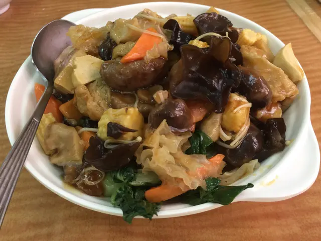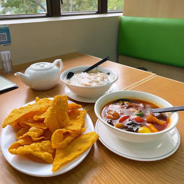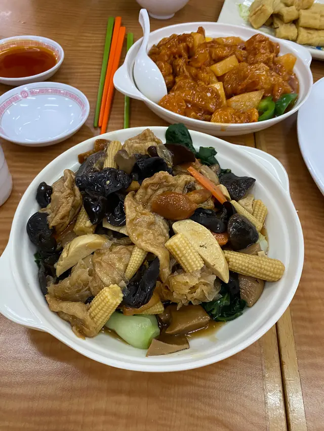 這間齋舖實在讓人驚喜,食物的種類繁多,色香味俱全。每一道菜餚都經過精心製作,,皆能讓人感受到廚師的用心。特別是他們的招錦鹵雲吞,帶有濃郁的風味,令人回味無窮。環境方面,這間齋舖的裝潢典雅,充滿禪意。柔和的燈光和清新的植物裝飾,讓人一進門就感到放鬆。用餐區設有舒適的座椅,讓顧客可以悠閒地享受美食。背景音樂輕柔,營造出一種寧靜的氛圍,讓人可以遠離城市的喧囂,靜心品味。總的來說,這間齋舖不僅在食物上顯示了素食的無限可能,更在環境上提供了一個理想的用餐空間,無論是與家人或朋友聚會,都是一個值得推薦的好地方。甜品合桃露,即叫即整,生磨,非常美味!食完後再學院裏遊覽一下身心舒暢!還有一個財神殿…查看更多