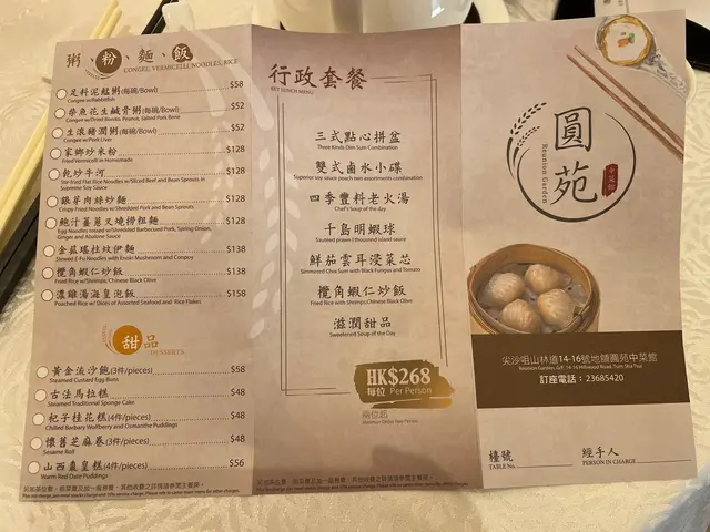 圓苑 (尖沙咀) 网址: https://s.openrice.com/QrLS0tNWA00 地址: 香港尖沙咀山林道14-16號達榮大廈地舖 电话: +852 23685420
