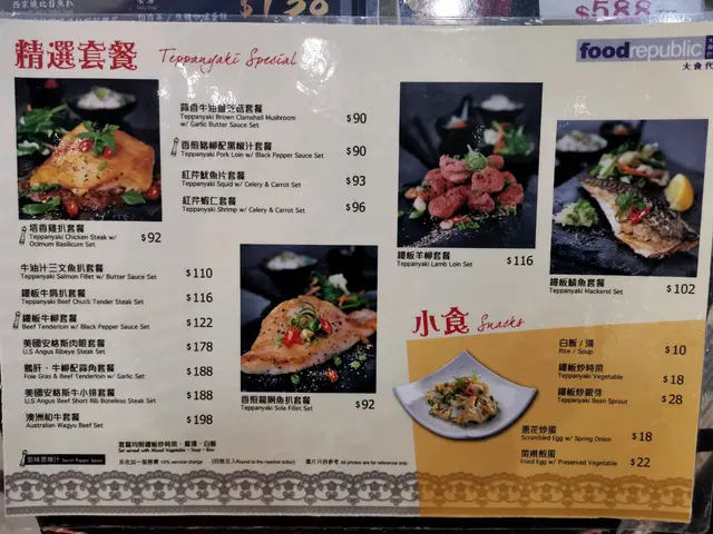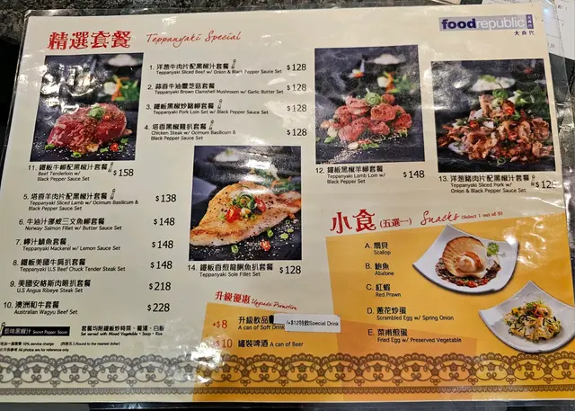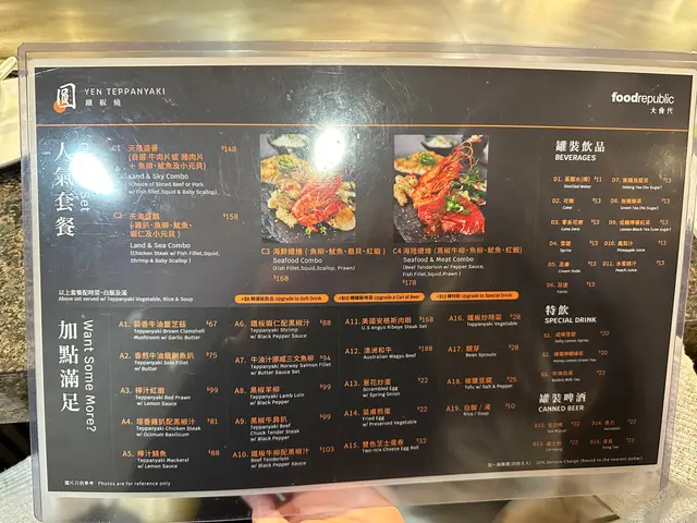 圓鐵板燒 (尖沙咀) 网上订位即赚Rice Dollars 网址: https://s.openrice.com/QrLS0CMC000 地址: 香港尖沙咀廣東道30號新港中心地庫大食代內 电话: +852 21111672