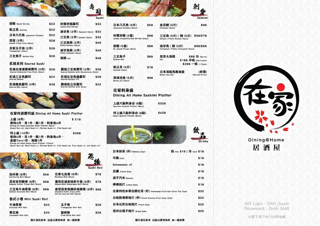 在家居酒屋 (大围) 网址: https://s.openrice.com/QrLS04OaA00 地址: 香港大圍下徑口村154號地舖 电话: +852 26463668