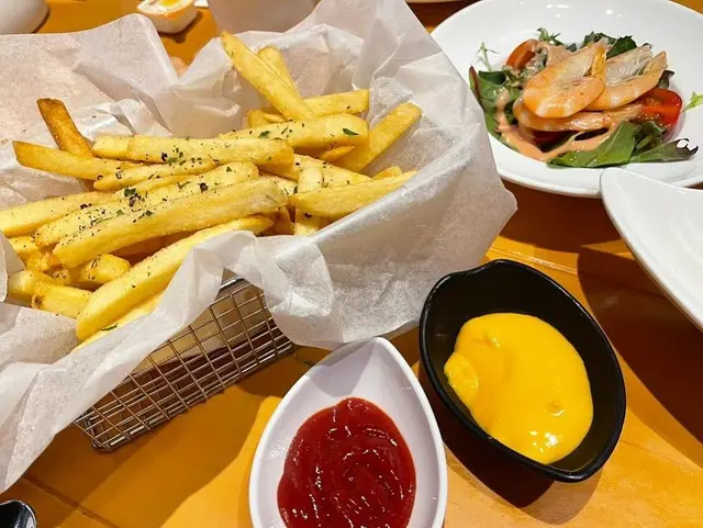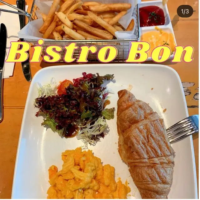 落堂之後去食下午茶🥰好味道又抵食嘅餐廳👍😛🚩 煙三文魚炒蛋伴牛角包及沙律菜 $46 (下午茶)牛角包幾鬆軟但三文魚略為冇乜味🤭炒蛋幾滑嘅😛啲炒蛋夾落埋個牛角包度食呢口感會豐富啲🥐🥚沙律就正正常常🥗🚩 粗切薯條伴車打芝士醬 $36 (下午茶)薯條即炸嘅上枱熱辣辣😋分量超多☺️點埋個車打芝士醬超級好味😊😊不過薯條上邊灑左啲鹽就略鹹👅總結時間🥰喺浸大返學嘅朋友仔唔想食AAB同聯福樓🤭可以同朋友選擇Bistro Bon💛查看更多