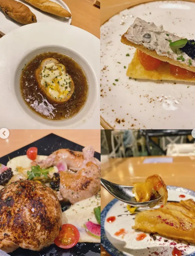 餐廳位置距離地鐵站略遠需要行10分鐘左右去到就見到浸大搵左一陣先知原來係浸大入面開頭諗住叫一個主菜加一個意大利飯但後尾知道要叫主菜先可以享有+$38 加配是日餐湯同餐飲知道是日餐湯係龍蝦湯就即刻決定叫兩個主菜再加配 今次無食威靈頓牛柳因為臨時walk in要食既話就要預訂 餐包有迷你法包同提子法包唔會太乾身幾好食餐湯 味道唔會太淡濃厚既龍蝦味如果有龍蝦肉就更佳飲到後期就覺得有少許咸可接受亦都好飲!開頭唔知叫左一碟parma ham + salami + cheese 拼盤但原來每枱都會送一碟😯待應知道之後都驚我地食唔曬主動問洗唔洗幫我地取消返服務態度超級好🥺叫左份48小時慢煮牛小排肉質好嫩滑 厚薄岩岩好配合埋個汁好好食隔離個薯蓉好creamy入口既融另外叫左個法式無骨春雞就算雞胸都唔鞋好嫩滑雞胸中間放左d豬肉鴨肝餡料味道就嘛嘛😢餐飲叫特飲享有半價叫左杯菠蘿荔枝乳酪好飲但偏甜下次可encore叫少甜 整體食物都好食但係值得一讚既係服務態度超好幾位員工都好態度。查看更多