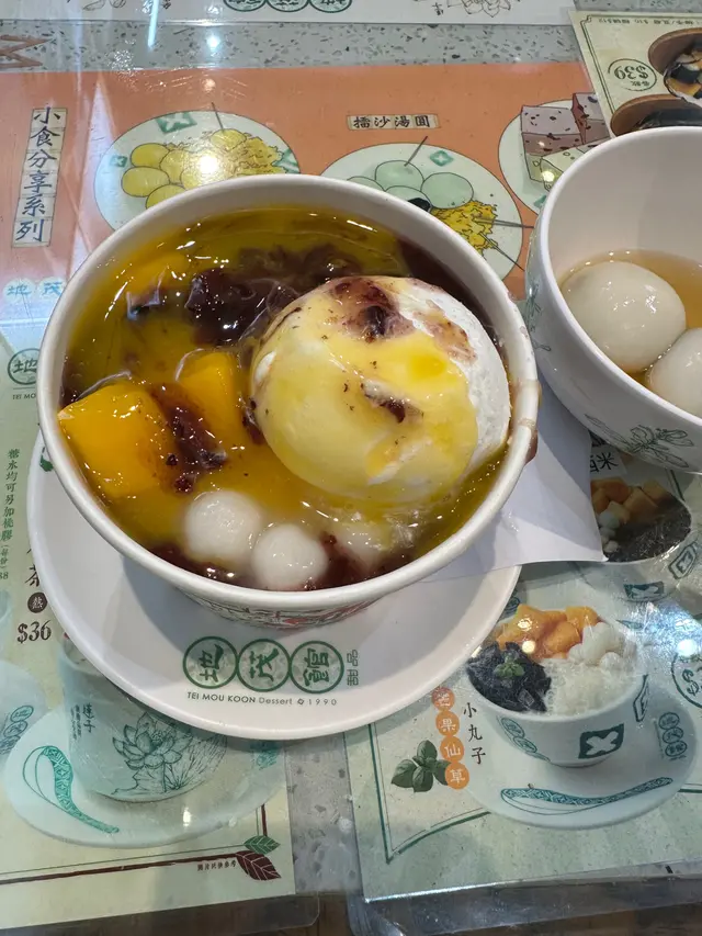 食飽飯但又想食甜品,淘大有幾間,未試過地茂館所以試試。見到隔離枱芒果幾吸引,我地就叫咗芒果涼粉小丸子同芒西小丸子。芒果味道甜甜酸酸,涼粉味道比較淡,互相配合下幾好味。呢度嘅小丸子質感十分好,有咬口,唔會太硬亦唔會太淋,而且有少少甜味,比起貴價糖水店更好食。另一碗芒西椰汁味濃,西米比較淋,都係小丸子比較突出。 總括來說2碗都用料充足,真材實料,不會太甜,味道都是中上,份量亦充足。店內環境較擠迫,通道較窄。店員積極主動,服務很好,見我用紙巾抹乾淨支膠湯匙,立刻問是否需要幫我更換。我告訴佢因為想帶回家回收。美中不足是此餐廳堂食使用即棄碗同膠餐具, 如果可以轉用返可重用嘅碗&餐具就更好更愛地球了❤️🌍。查看更多
