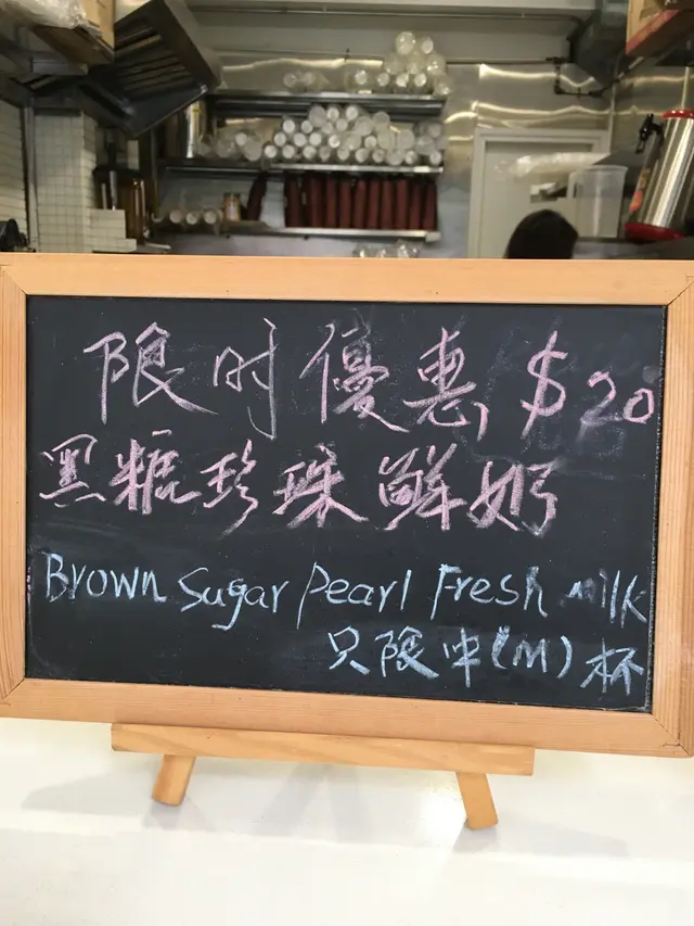 依間位於佐敦既台式茶飲 離大街遠一點 加上好似大廈整緊 遮住左個門面 睇住地圖都差啲搵唔到 🤣🤣飲品方面比較多 而見到價錢方面都係好實惠 出面賣到成$30-40一杯既黑糖珍珠鮮奶 依度原價只係賣緊$25 咁岩今日做緊限時優惠 一杯中杯都係$20 咁抵邊度搵到 咁著數既優惠 緊係光顧 好快手就拎得飲品 賣相不錯 即刻試飲 黑糖味相當濃 仲有超多珍珠