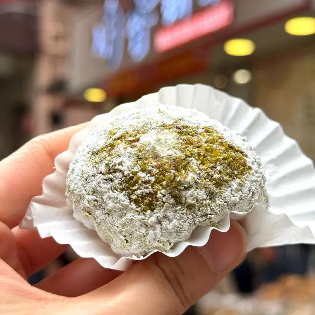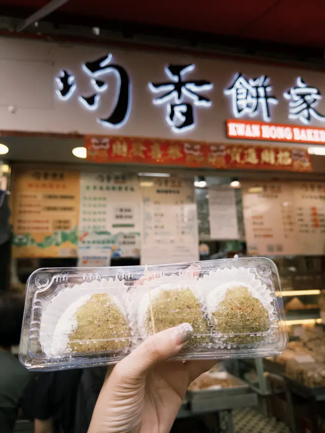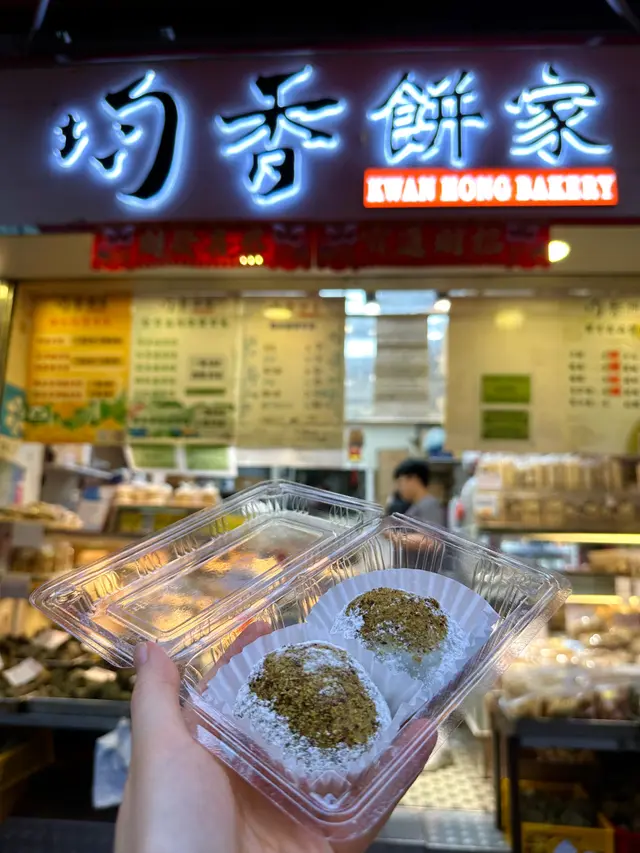 🇭🇰有逾40年老字號的「均香餅家」🌟主打中式傳統糕點唐餅🥮近年創新, 貼近潮流, ⚪️糯米糍即刻成為店內名物👻✴️人氣程度爆燈, 更於多處開快閃限定店⚡️📍門市喺深水埗北河街尾, 鄰近石硤尾🔸開心果糯米糍💚  $12  7/10即叫即整!等約5-10分鐘⏳👩🏻見住姨姨們密密包, 好期待呀😆⚪️糯米糍有半隻手掌大✋🏻皮薄煙韌, 餡料十分飽滿😍💚夾雜開心果粒粒, 開心果味足💚成個啪覺得有少少甜😳👅下次想試埋燒餅同其他口味~(˶‾᷄ ⁻̫ ‾᷅˵)查看更多