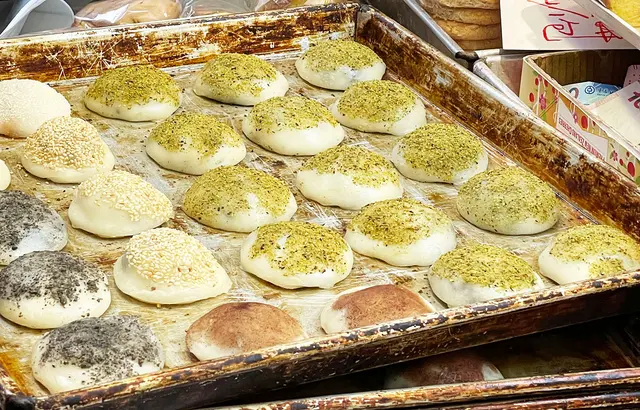 近期大熱的開心果已經蔓延到傳統餅食。來到深水埗一間傳統的餅店,也是最近很多人喜愛打卡的熱點。當大家仍然吹捧開心果糯米糍,我就選了另一款燒餅來試,而且可選擇的餡料味道也差不多,當中包括開心果、紅豆🫘、黑芝麻、花生🥜、榛子朱古力🍫和栗子🌰。剛到埗的一刻,正好燒餅新鮮出爐,那當然不能錯過!開心果燒餅單看外表,這個燒餅已經很吸引,外皮佈滿開心果碎粒。咬一口後,裡面爆漿的開心果餡料更湧出來,材料十足,而開心果的香脆與餅皮的柔韌交織,令人忍不住一口一口吃下去。在味道方面,個人覺得偏甜了一點,也有點像花生味,可能兩者都是果仁類別關係,但論及口感層次,開心果燒餅確實不俗。黑芝麻燒餅黑芝麻燒餅同樣有煙韌軟熟的外皮,新鮮的芝麻餡非常足料,香味濃郁撲鼻,無論在味覺和嗅覺,每一啖都很滿足,絕對物超所值。豆沙燒餅相比開心果和芝麻口味,我比較欣賞豆沙燒餅,它相對不是太甜,整體味道非常平衡。內層除了有幼滑的紅豆沙餡料,外層亦鋪上滿滿的芝麻,增加口感。燒餅這一類傳統的餅食開始買少見少,難得這間餅店仍然保留很多款自家製的精美包餅小食,當中包括豆沙角、老婆餅、笑口棗、炒米餅、菠蘿包…雖然今次未有機會試試餅店的糯米糍,但相信只要是新鮮出爐,而基本餡料大致相同,應該也是不錯選擇。查看更多