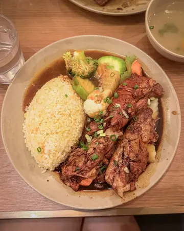 之前食过一次, 猪软骨劲好食, 所以行完山谂食咩即刻谂起佢✨暂时嘅世一猪软骨✨, 迟咗几分钟已经要排队, 虽然好快入到去(btw location要返openrice, google map有啲唔准)❣️猪软骨野菜咖喱饭一开始见到咁大份猪软骨已经星星眼🤩系我食过最淋嘅猪软骨✨淋到好似食紧啫喱/肥膏咁, 但系又唔肥腻oiishii🫶🏻系骨胶原嘅味道🤓慢煮亦都好入味✨咖喱味唔算重💰75❣️猪软骨7小时煮定食💰72之前有试过乌冬, 但系感觉汤底冇想像中咁浓郁🤔