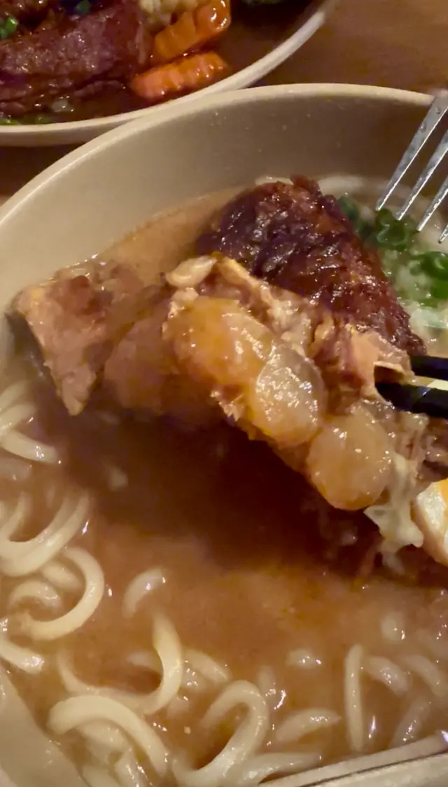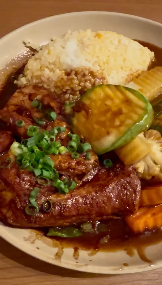 之前食過一次, 豬軟骨勁好食, 所以行完山諗食咩即刻諗起佢✨暫時嘅世一豬軟骨✨, 遲咗幾分鐘已經要排隊, 雖然好快入到去(btw location要返openrice, google map有啲唔準)❣️豬軟骨野菜咖喱飯一開始見到咁大份豬軟骨已經星星眼🤩係我食過最淋嘅豬軟骨✨淋到好似食緊啫喱/肥膏咁, 但係又唔肥膩oiishii🫶🏻係骨膠原嘅味道🤓慢煮亦都好入味✨咖喱味唔算重💰75❣️豬軟骨7小時煮定食💰72之前有試過烏冬, 但係感覺湯底冇想像中咁濃郁🤔…查看更多
