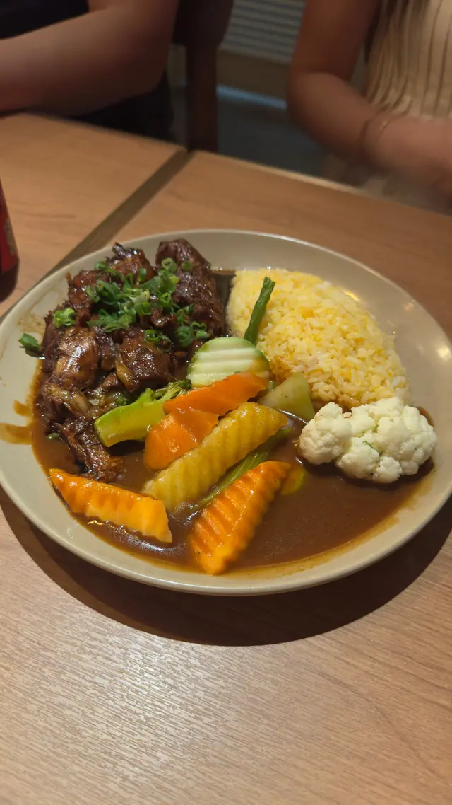 呢間一直好想去,今日終於抽到時間去潮聖,平日八點幾諗住唔使等,點知去到見到門口好多人😳😳😳好彩最後唔使等好耐就入得,雖然舖頭唔係好大,但係都乾淨企理!坐低即刻嗌返個招牌豬軟骨野菜飯,呢個份量真係好足!豬軟骨好腍好入味,開頭仲驚會好嚡,野菜都有好多款,啱晒好需要食菜嘅我😆😆個飯都唔係普通白飯,入邊係有南瓜番薯,粟米生薑!見到隔籬枱嘅牛肋條同埋烤雞都好吸引,下次都要嚟試😋😋食哂成份真係勁飽超滿足👍🏻👍🏻…查看更多