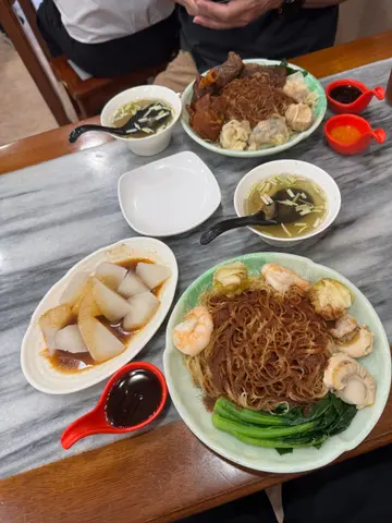 深水埗区有两间米芝莲云吞面一间系刘森记另一间系坤记今次就去左坤记先而家都无乜舖头会整个半开放式工房公开打面好旺角门口本身都有个咁既位但而家都好似无人打面了个位置系长沙湾元州附近永隆街舖头对系比排档同棚架遮住所以唔系米芝莲或者其他媒体介绍就真系唔会见到佢门口都贴左好多车胎人出黎门口有个开放式既打面房可以见到面块同制面机不过夜晚黎到就睇唔到用竹升打面了应该要日头先会见到坤记店舖细小台唔多系中式面店格局入面算整齐既比面面栈同刘森记干净同埋门口见到有好多唔同类型既自家面卖平日夜晚七点钟入到黎唔洗等可以直入仲有全张四人台坐就算需要搭台都唔会太迫台面有辣油调味坐低有杯热茶送过黎唔洗茶钱亦都无服务费坤记其中一个特色就系劲多餐牌睇完真系头都痛埋而且望落好多都系差唔多系无可能睇得明同计到边样叫法最著数大概只可以当佢虾子捞面55加𩠌加10蚊咁样睇法同面面栈对比系贵些少既咁所以我今次叫左富贵捞面要85蚊不过佢除左有茶有特别名既几𩠌面叫做系套餐会有杯野饮或者油菜送我系拣左豆浆富贵捞面系四𩠌黎有虾子牛腩猪手云吞另外有蚝油同辣酱各一羹有放骨既碟捞都都碗一干三湿个卖相都算唔错既但之后无事做继续睇menu其实仲有个90蚊既镇店虾籽捞面系有埋水饺即系5𩠌一次就可以试晒所有野但当时睇唔到所以我系染左既虽然𩠌多但猪手牛腩都系比较细件仲有云吞都得两粒虾籽感觉上都比起面面栈少唔可以捞晕晒成个面所以好多面食到都系未有味既亦都唔够香真系要再加蚝油先够味面条整体唔够爽口感觉系比较重身个汤有些少虾籽但有少少那唯一比较好食都系件云吞系实净足料另外有猫店长可以L整体唔系难食既不过就真系未够好食至少同街坊店面面栈都唔够比而且仲要比较贵85蚊收八达通临前送左张现金券现场都听到有人会用同埋可能面既份量多少少仲有杯豆浆所以都几饱肚佢地云吞唔差我谂水饺都系好既下次可以唔洗叫猪手同牛腩服务都OK既地点系长沙湾站附近都算方便点都舒服过同区刘森记如果经过开口痕都可以试下但就唔需要专程黎食既水平…查看更多