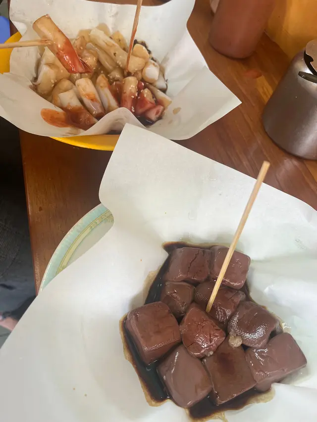 入嚟大圍 唔係特別肚餓,但係阿媽又想食少少嘢當午餐小食 見到呢度有腸粉就落雨是但嗌四條,然後因為要陪佢食,所以佢就嗌多份$10嘅豬紅,平就係平嘅,不過質素麻麻地腸粉四條份量都幾多,不過佢所有醬汁都係好稀嘅 水水地啱啱唔係特別鍾意食芝麻醬甜醬,不過都嫌佢甜 辣椒油就幾香 不過整體印象麻麻地豬紅$10好平,有10粒大概 不過有一粒係好似半粒咁笨咗整體而言 小食冇咩特別要求一分錢一分貨 環境算係OK。因為有張枱仔自己自成一國有成食吓都OK嘅查看更多