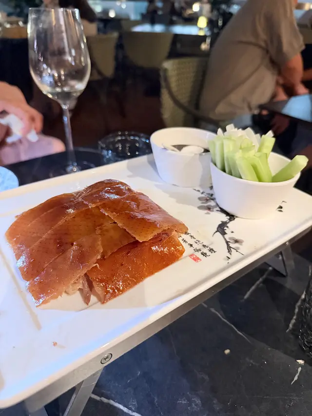 Dinner @ 城中鴨子 ~烤北京填鴨:填鴨烤得皮脆肉香,肉質嫩滑,須則未算有驚喜,但都叫合格有餘 ~醉雞:雞肉嫩滑入味,酒香滿溢,略嫌刀功不夠,斬彷拖泥帶水,吃到有不少的碎骨 ~翠紅煨鮑魚:本身鮑魚就夠入味,同個 sauce 好夾,但個蔬菜就好似坐冷板凳的二打六,似是無關係的 ~淮山百合炒蝦球:炒功不俗,蝦球爽口彈牙,同其他食材配料都好夾,味道清而不寡,全晚最欣賞這道菜 ~松子黃魚:魚肉香口鮮美又滑嫩,個 sauce 煮得的甜酸度很平均,味道不會搶走魚的本味,魚肉跟個汁互相輝映,很不錯吃 ~本篇完 ~…查看更多