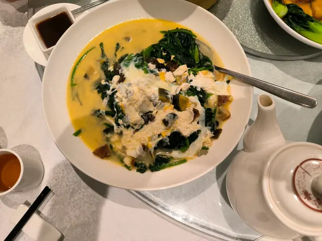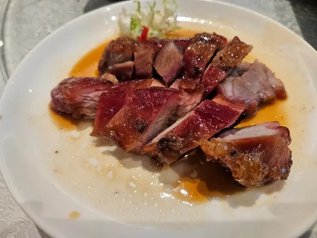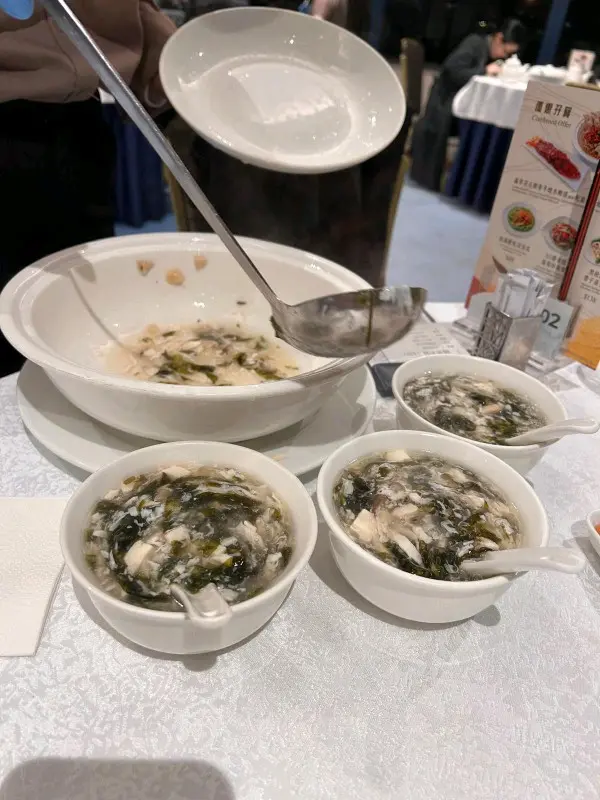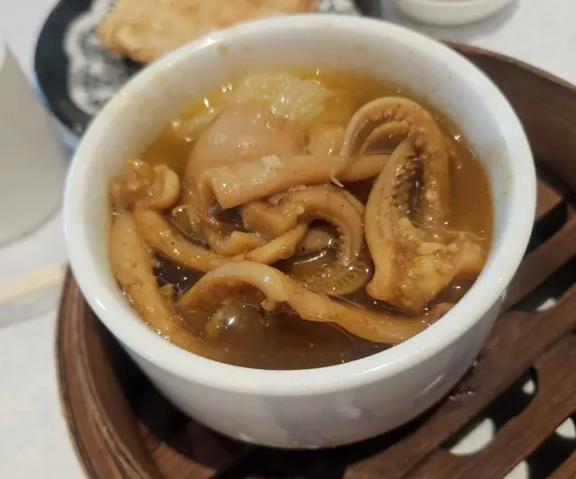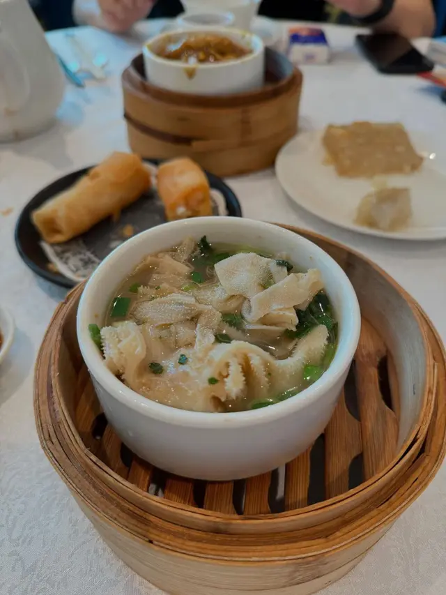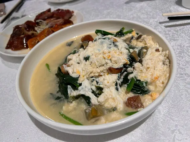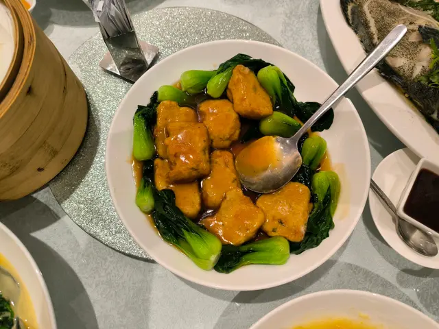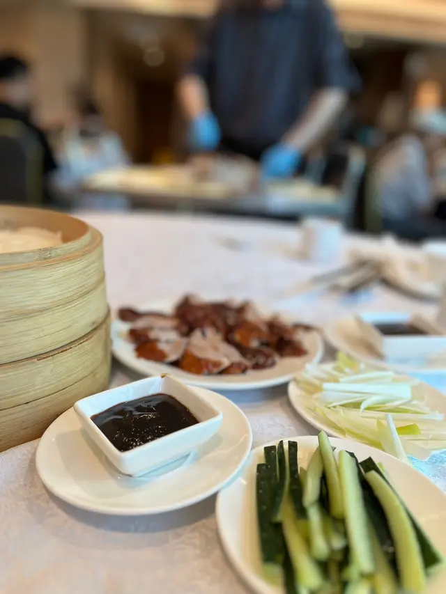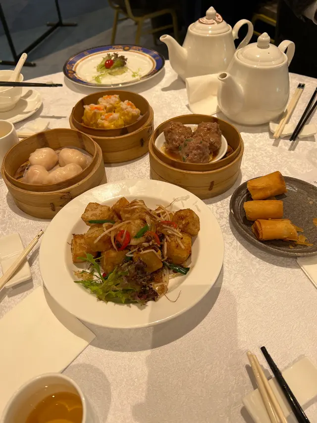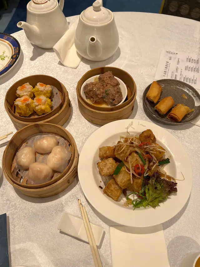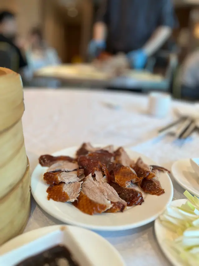 四個人叫咗個四人套餐。包燒味拼盤嘅質素可以但份份量略少;三個點心我哋揀咗雞包仔、粉果同蒸排骨。三個點心都有水準。另外包個老火湯,夠科兼夠火候。每人75,坐得舒服。北京片皮鴨絕對是必點之一!服務員專業地現場片鴨,鴨皮香脆可口,配上薄餅、青瓜條和甜麵醬,味道層次分明,令人一試難忘。不過記得留台要預訂左先有得食脆皮金粒豆腐係一道小巧精緻的素菜,外皮炸得金黃酥脆,內裡滑嫩細膩,搭配淡淡的鹹蛋黃味,簡單卻令人驚喜。這道菜性價比極高,非常推薦!…查看更多