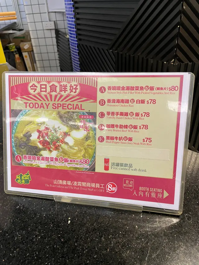 我都估唔到在山頂遊客區, 竟可以有咁高CP值香港地道食品, 而且又有咁嘅水準, 首先在山頂廣場食店林立, 而這所城寨風味又並不是有一個獨立舖位, 而座落在一個像food court的商場內, 反而他的座位更有特色, 又可以打卡, 但當然最重要就是食物質素, 他有整個山頂廣場都沒有的香港地道食物, 包括碗仔翅、手撕雞、咖哩魚蛋、混醬腸粉, 而我今次就試了他的套餐咖哩牛肋骨飯, 想不到咖哩和牛肋骨都很惹味, 而他的那個冷盤手撕雞, 也很出色, 碗仔翅就相當足料, 另一個瑞士雞翼絕對抵食, 套餐還可以加十蚊換一樽地道花茶, 能夠在山頂一面欣賞景色, 一面享受香港地道高質食物, 實在是一樂也。…查看更多