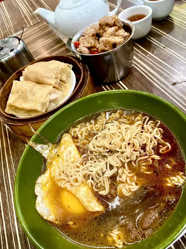 腸仔太陽蛋沙嗲牛肉出前一丁、四寶雞札、豉椒排骨飯