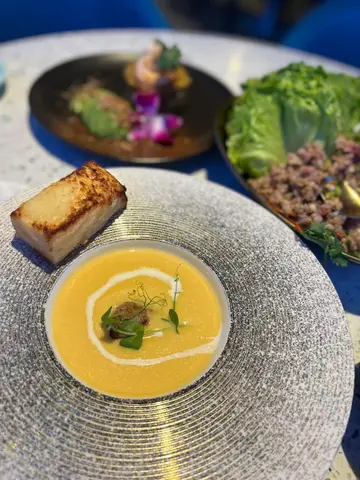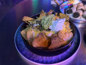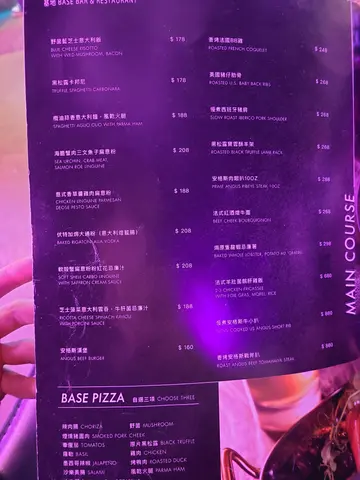 想在尖沙咀找个有得饮下酒食下正餐的餐厅,结果揾到呢间都唔错。我地Weekday夜晚去,所以都唔多人,上菜亦好快。4个人叫左4样前菜,2样主食&开左一支红酒。我觉得<基地鸡锤>最普通,原先谂住呢个菜写住<基地>会系餐厅的名菜,点知食落都只系一个普通的甜辣鸡锤。而黑松露薯条的黑松露酱唔太够,好多条都无酱在上面。而炸鱿鱼个粉整得几好,所有炸物都系即炸,热辣辣的。牛扒够淋,不过10oz其实4个人都只系够每人一细旧。而pizza个饼底做得唔错啊~唔记得影支红酒,不过整体呢间餐厅都OK!另外9:30PM前离座有折~…查看更多