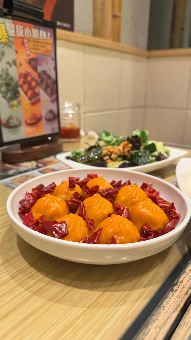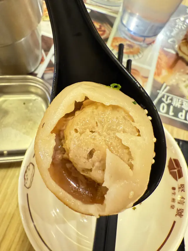 堅揪小龍包和葱油鸡是一个套餐里面的,皮会厚一点点,口感比较有嚼劲,汤好丰富,肉不功不过,普通味道,搭配送的姜丝和醋一起吃解腻