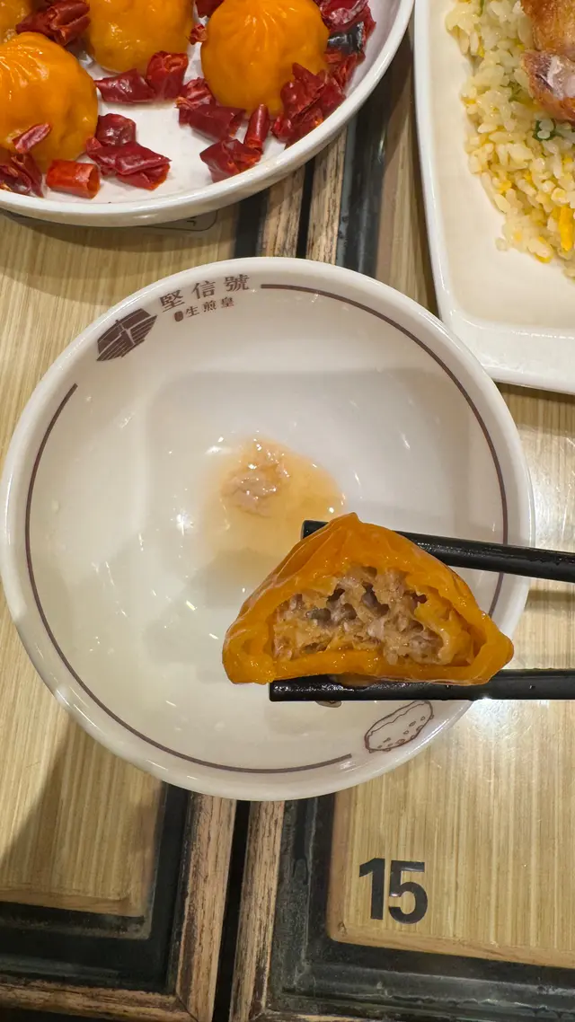 生煎包一般不错,就是普普通通,没有特别出色的味道,底部煎得焦黄香脆,中间有汤汁,中意倒陈醋一起吃,酸酸的可以中和肉的腻