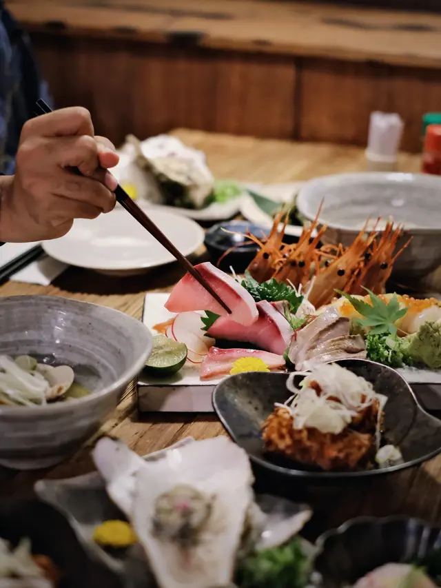 Finally had dinner gathering with my sec sku teacher and classmates. .For appetizer, we got Tako Wasabi, Ikanago, Potato Salad and Barachirashi. The tako was stimulating becoz of the wasabi, which elevated one's appetite. The onsen egg on top of the Potato Salad had a runny egg yolk. The Barachirashi was refreshing and had an abundant amount of diced sashimi. For main dish, we ordered Shio Sashimi Platter, Sweet Ebi Sushi, Sake Steamed Clams and Japanese Fried Vegetables. The Shio Sashimi Platter included salmon, yellow tail, scallop, ebi and red tuna. The sashimi was fresh and thickly sliced. Their sweetness enhanced their savoury.Topped with bonito flakes, the Japanese Fried Vegetables came with a generous amount. The vegetables was well-fried. It would be nicer if it could be hotter. For skewer, we got Grilled Chicken with Salt, Japanese Pork Belly and Zucchini. The grilled chicken looked attractive with the crispy orangish skin. The hotly-served pork belly had a balanced portion of fat and meat..We got a separate area, where we could sit and chat comfortably for the whole night. The wooden decoration and poster created a traditional Japanese atmosphere. Quite an enjoyable dining experience. 查看更多