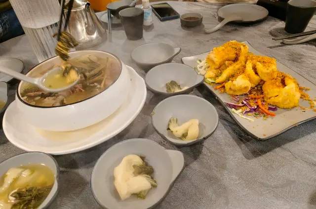 同一時間叫了五碟餸,有二碟餸還未來,我半個鐘前追服務員,女服務員話幫我睇下話沒有落漏單,之後再等半個鐘今次追是啤酒服務員,追之後說送錯比另一枱,即是之前果個女服務員沒幫我跟進,女服務員睇到我張枱已沒位置放其他餸呀,都唔幫我執佐食完的碟,服務態度又差,跟本不是做生意的。食物方面死喊,叫了一個豆腐魚雲湯,沒魚雲只得魚頭,湯又喊,鼓椒炒沙白已經沒鑊氣又喊到飛起,今次第三次去的,品質及服務已經變差了。不值有米芝蓮的品牌,唔會再去…查看更多