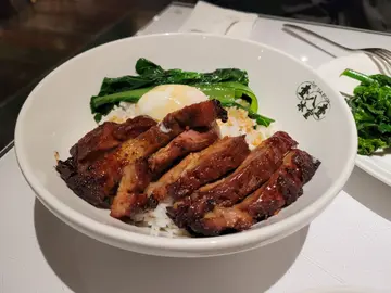 我们是在加拿大回来探亲,在 Eight-One-Eight Hotel & Serviced Apartment 住了四个星期,在这冰室吃了四次:早飧,午飧,下午茶,及晚飧。应该可作公道食评。咖啡,Cappuccino 及奶荼不错。沙爹牛麺OK,但配即食麺有点不对,$68 一碗应该是蛋麺。肠粉不够热。红豆冰 OK,但不是超棒。黑毛猪叉烧温泉蛋配丝苗白饭不错,义烧松软又好味。京都猪扒配丝苗白饭很好,值得推荐。最令我心服是情人节 special set dinner. 八度菜式加香嫔,一口价 HK$988 plus tips。不贵;每一式都是精心杰作。乳鵨有点干,但乳鵨多数是有点干的。大师傅厨艺高超,可惜 Menu 菜式不多,没有很多选择。…查看更多