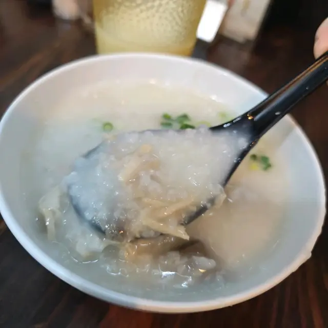 夜晚想食得清淡啲,所以想搵間粥店食下。呢間粥店嘅粥真係有好多選擇,清淡嘅粥有、連蟹粥都有。我哋就叫咗豬膶粥食喇,粥底好綿,豬膶嘅份量都唔少。另外都叫咗墨丸麵,墨丸彈牙,湯底睇相都知夠清唔油,麵亦都冇鹼水味。黎到粥店梗係要叫我最愛嘅炸兩食啦,不過呢個炸兩就有啲令我失望喇。一來上枱已經凍冰冰,二來油炸鬼好淋,連少少脆位都無,唔知係咪因為我夜晚先叫,所以擺咗好耐好耐呢😥另外甜醬麻醬等等係自己任落的,麻醬比較鞋口,即使加左醬,炸兩都係唔好食😟查看更多