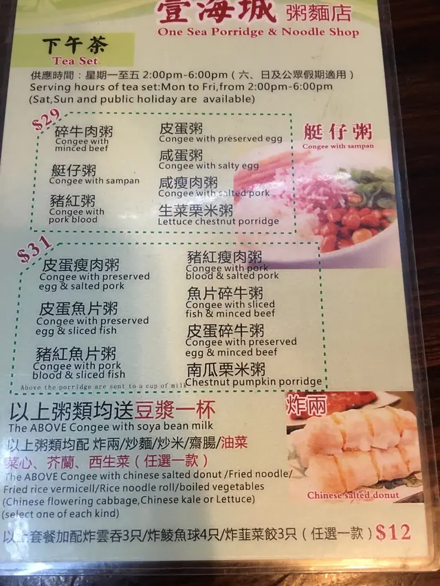 係附近想搵間食粥嘅已經買少見少,而好食嘅粥麵店仲要有油器賣嘅仲更加缺乏!真係想食都無得食!以往行過附近呢間壹海城,永遠不會幫襯。但上次想食粥,無選擇之下只好自己煲,但油炸鬼真係攪唔到。唯有打算幫襯下,竟然有驚喜!呢排食咗幾次壹海城,食物質素大大提升油器咬落口外脆內軟又唔會油淋淋,同以前硬掘掘又係附近想搵間食粥嘅已經買少見少,而好食嘅粥麵店仲要有油器賣嘅仲更加缺乏而往行過附近呢間壹海城,永遠不會幫襯。但上次想食粥,無選擇之下只好自己煲,但油炸鬼真係攪唔到。唯有打算幫襯下,竟然有驚喜!呢排食咗幾次壹海城,食物質素大大提升油器咬落口外脆內軟又唔會油淋淋,同以前硬掘掘又油淋淋嘅口感完全兩回事😅粥底好綿唔會水汪汪仲要而家一至日都有早餐同下午茶餐,有心做真係差好遠。唯一希望佢哋係衛生方面可以改善一下,油淋淋嘅檯櫈係比較難令人接受。查看更多