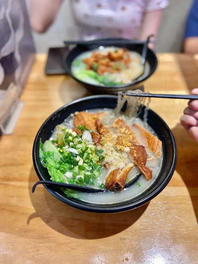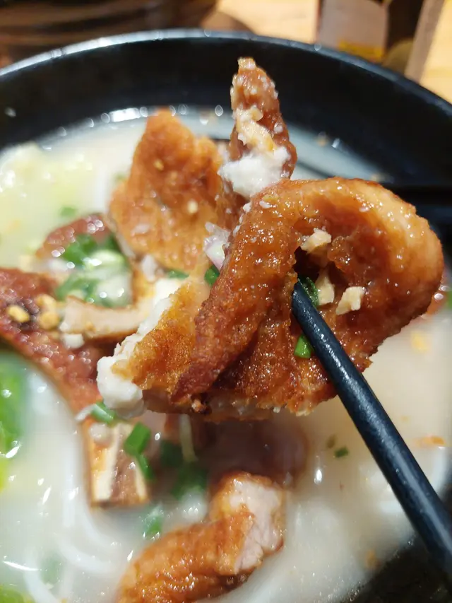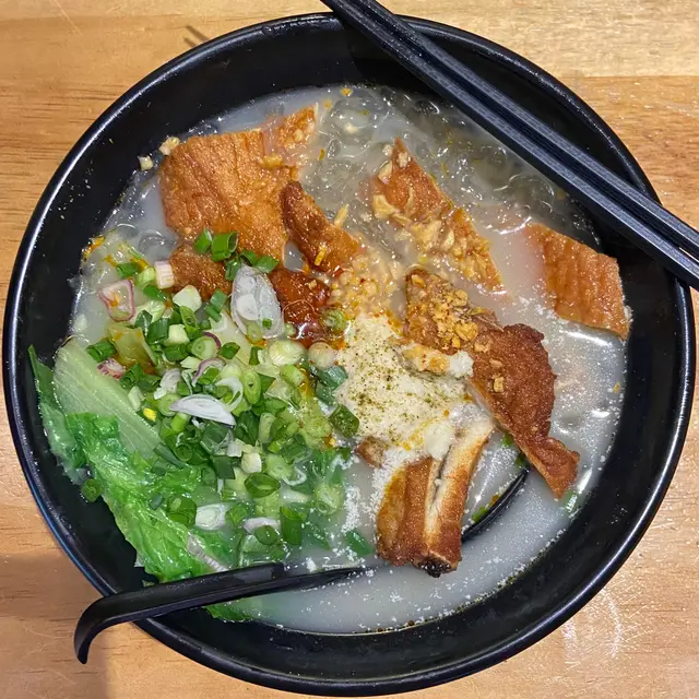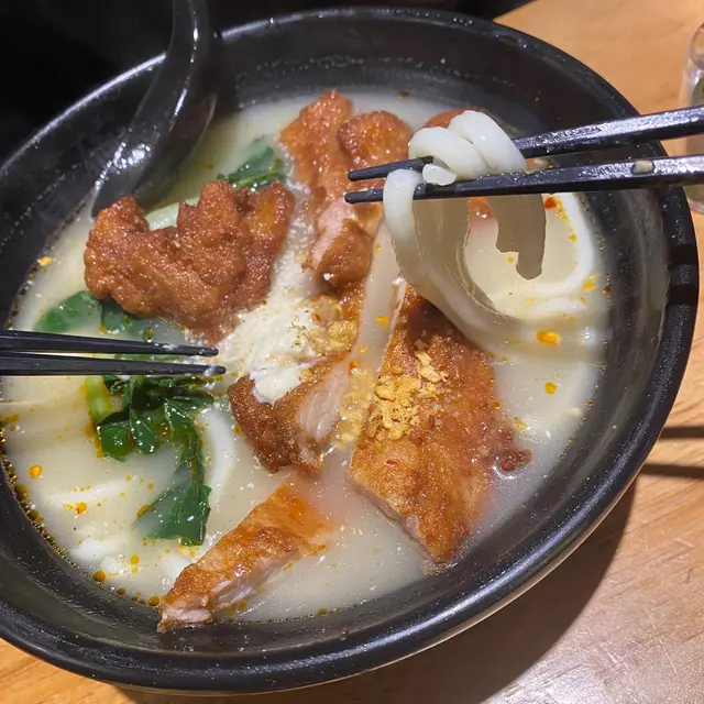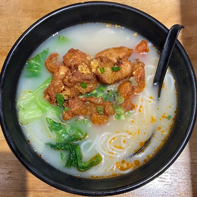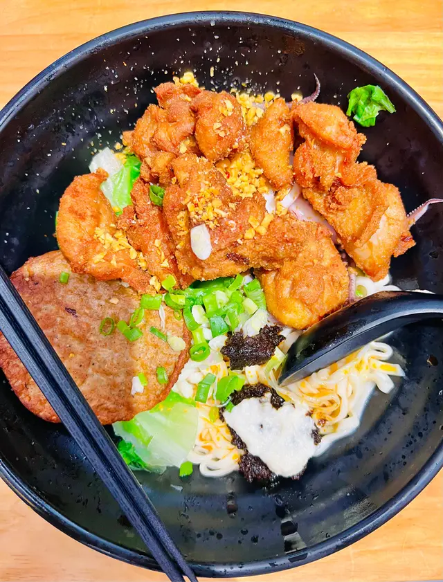 東大街出名多好嘢食 今次我哋就試吓呢間位於東大街出晒名嘅良心車仔麵🍜我哋係平日夜晚6:45到 喺出邊排隊都排左大半個鐘 雖然等咗好耐但係食完之後覺得好值得🤪椒積豬扒薯粉 + 魷魚鬚 微辣湯底🍲一個字 正!終於明點解佢啲豬扒咁出名🥩豬扒煮得好淋 好入味 以佢嘅招牌椒積煮法令到豬扒外脆內軟 而且唔係炸出泥嗰隻脆 而係煎香嘅脆 加上炸蒜頭 真係好好食 🤤🤤🤤仲有要讚嘅係薯粉煮得岩岩好 唔會太淋亦唔會太硬 口感啱啱好👍🏼而且份量好大兜 仲送好多菜 食完好飽好飽🤰🏻椒積雞扒麵 + 魚腐 清湯 🍜佢嘅雞扒都好出色 同樣嘅煮法 同樣好淋好入味😀魚腐就正正常常炸花枝丸 🍡我哋叫咗叫咗炸花枝丸作為小食一齊share佢比兩碗麵遲上 真係即叫即炸 第一啖食落去好surprise 點解丸都可以整得咁好味㗎😂😂👍🏼然之後我哋覺得 可能係我哋食過最好食嘅車仔麵😎😎😎查看更多