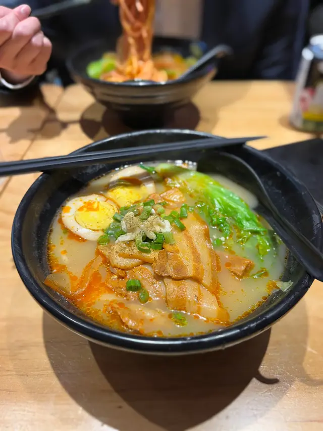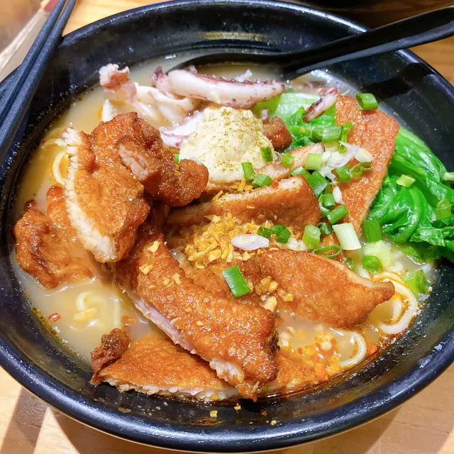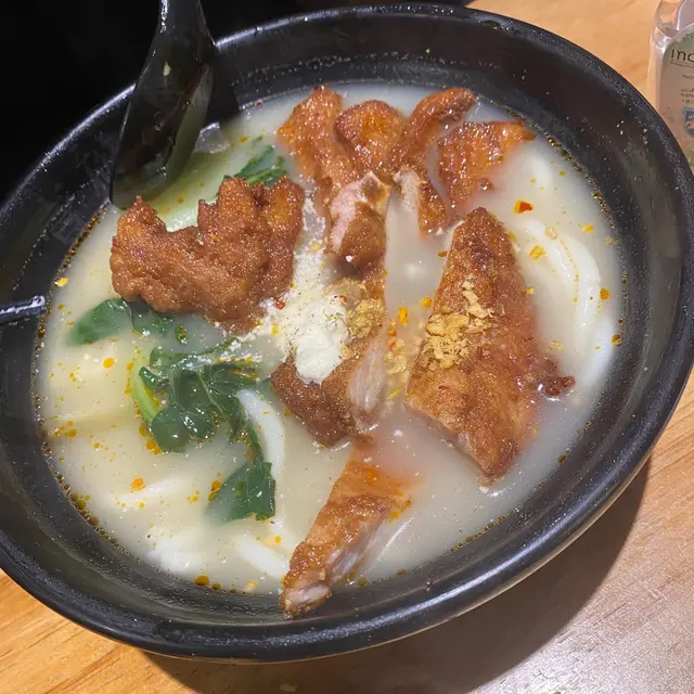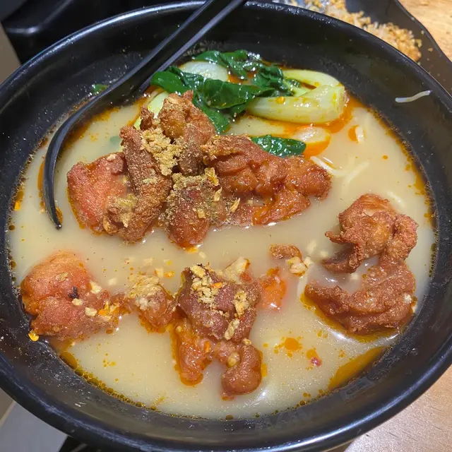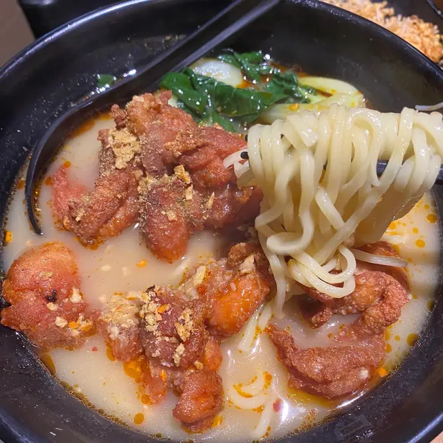 💸人均消費: $50-70🌿評分: 3/5🈚️加一服務費心血來潮想食車仔麵類嘅嘢🤔經過見到咁正嘅佈置🌟又咁啱醒起之前喺OpenRice收藏呢間黃到金嘅港式拉麵🍜冇理由唔入去懲罰下佢💛✰3餸+粉麵(湯) ($42)🧶嗌咗魷魚鬚🦑+芝士腸+魚肉春卷🐠平時食麵最驚就係食食下冇哂餸😖但喺度食完全唔會有呢個問題😜魷魚鬚嘅份量超多!! 食到最尾都仲有幾條🤩湯底就嗌咗微辣🌶啱哂我呢啲食辣bb班😗以呢個價錢嚟講質素同份量都唔錯!✨🧸話佢叫嗰三款(響鈴+肥牛+漢堡扒)之中佢最鍾意漢堡扒❤️食得出有特登醃過!! 特別入味😋✰椒積雞翼(3隻) ($28)雖然價錢略貴, 但物有所值😻炸得超酥脆嘅外皮再加埋啲椒鹽喺面🤤真係超惹味😭炸完之後雞翼嘅肉都保留到肉汁✨肉質唔會變得好乾好鞋🥰✰咖哩豬皮 ($17)$17有咁多真係幾抵😂但咖哩味有啲淡🥲可能係因為就咁淋上面&豬皮未隔哂水😔如果啲汁再杰翻🤏🏻又或者用咖哩汁炆豬皮應該會好食好多😫查看更多