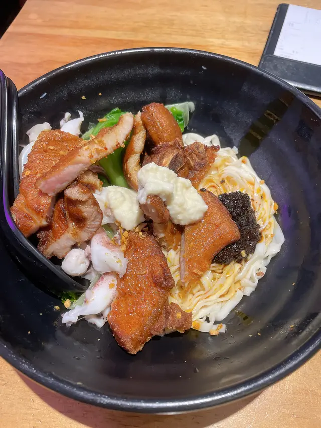 經過東大街接近午餐時段,看到排隊的麵店,就決定試試點了《椒積豬扒麵》加餸 《墨魚鬚》配《土炮麻辣》拌麵豬扒份量不少,味道剛好,不太軟又不太硬,咬下有咀嚼感,但稍微不夠「椒」。加餸的墨魚鬚可以說是淡如無味道,只單靠麻辣醬調味,但質地爽口不靭。至於麻辣醬帶濃郁麻辣味,個人略厭麻不夠多,重點吃完也不口乾,不錯查看更多