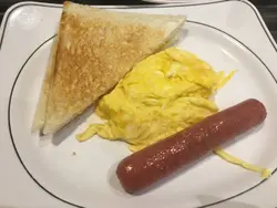 肠仔有煎香过,但略厌太咸。炒蛋都几滑;多士入面多牛油