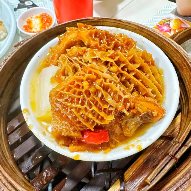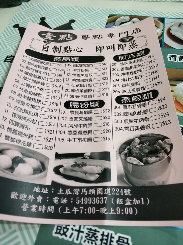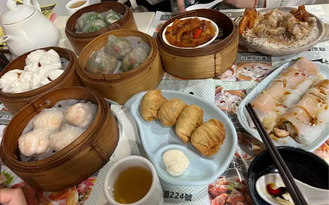 某日經過土瓜灣想食點心就試試,店內大概二十幾三十個位左右茶價$5 每位點心拼盤$40有燒賣 蝦餃 粉果 菜苗餃 叉燒包 馬拉糕,味道幾好又可以一籠有幾款點心 唔使逐籠嗌鮮蝦腸粉$27蝦新鮮 適中厚肉,腸粉滑。正常發揮鳳爪排骨飯$31都幾多排骨 幾多肉 不過都多肥位 比較難咬,飯既份量足夠亦粒粒分明 唔會蒸完會一舊舊香脆韮菜角$19真的值得一試 外皮炸得夠薄而脆,餡料又好飽滿 包得好好 食落唔會散開,幾驚喜。…查看更多