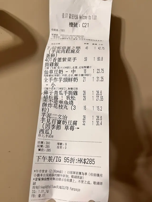 一年多前食过一次「壹.01」