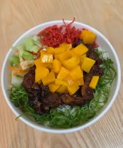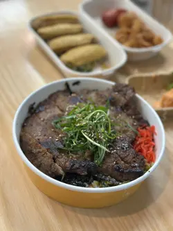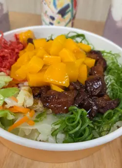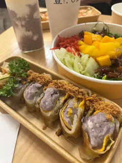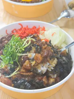 ,外層還塗上蜜汁,多添了一份甜味。飯底轉成豆腐底,滑溜豆腐和紫菜都幾搭!而且感覺健康,可以作為減肥之選