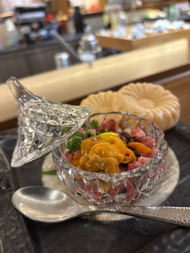 好耐冇食壽喜燒啦!去咗銅鑼灣壽兵衛,主打關西壽喜燒,餐廳全部都係吧枱座位,客人可以近距離同師傅交流,亦可以睇到師傅即席料理,色香味俱全!朋友預先喺openrice,更加有8折優惠呢!我點咗Deluxe Wagyu Set ($980, openrice訂座有8折優惠)前菜三點是晚前菜有磯燒鮑魚、水雲醋及蟹膏豆腐。最鐘意蟹膏豆腐,蟹膏味道濃郁鮮香,配搭面頭嘅三文魚子,雙重鮮味在口中迸發,絕對係幸福嘅滋味!海之幸刺身3點刺身係廚師發辦,呢晚有簡八魚、拖羅同帆立貝,全部都好新鮮。最鐘意帆立貝,有2大粒,口感柔軟,入口鮮甜!海膽和牛他他賣相好靚!食嘅時候將鮮甜嘅海膽、鵪春蛋黃、黑松露同生和牛混和一齊,然後放在香脆嘅最中餅上,味道同口感都好豐富。穴子茶碗蒸好少見到以穴子入饌嘅茶碗蒸,穴子嫩滑無骨,茶碗蒸都好滑。燒牛舌牛舌好厚身,牛味好濃,配搭辣蘿蔔蓉、蔥花、日本淡雪鹽,令味道更有層次。鹽煎美國熟成肉眼關西風壽喜燒都係先煎後煮,師傅用牛脂將肉眼煎香,口感好細緻,幾乎入口即化,沾上香濃嘅蘭王蛋黃,味道更佳!!壽喜燒日本A4和牛西冷除咗美國肉眼,點少得呢度出名嘅和牛。A4和牛油香與肉香兼備,配合蛋汁同珍珠米可以減低膩感。日本A4和牛三角胸肉呢個set真係勁豐富!食完兩大塊高質靚牛,已經超級飽足,原來仲有得無限追加日本A4和牛三角胸肉,我哋都講笑話餐廳會唔會蝕大本呢!A4和牛三角胸肉肉質依然細嫩無筋,但就比西冷同肉眼就多咗爽彈嘅口感,都係非常高質嘅牛呢!季節野菜盛合野菜拼盤好多款式,估唔到有蘋果,清甜嘅果香恰好可以平衡壽喜燒嘅濃味,唔錯!滿溢筋子釜飯太誇張嘅筋子釜飯!師傅先用滿滿嘅松葉蟹肉及黑松露(另外可加枝豆,不過我唔鍾意就skip咗)製成熱騰騰嘅釜飯,然後師傅再奉上一大碗滿瀉嘅三文魚子,任由我哋自己加進飯內,實現三文魚子自由!釜飯本身有松葉蟹肉及黑松露,已經好香,加埋三文魚子更係鹹香十足,超級滿足!清湯加咗舞茸菇,味道較清。甜品有密瓜配開心果雪糕…查看更多